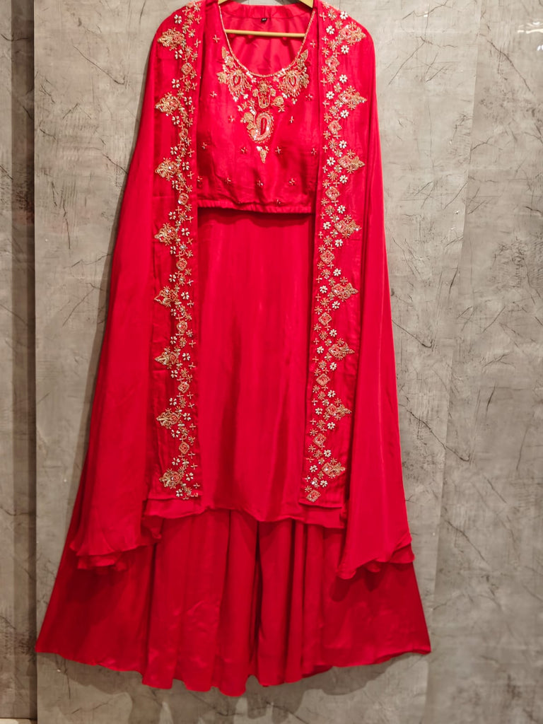 “Pari" Red chinnon Crepe party ware Sharara 301