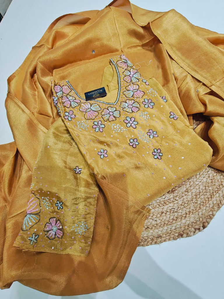 Yellow Chinnon Hand Embroidery Sharara Kurtha 464