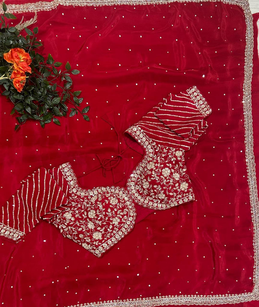 Red Dola Silk Handwork Straight Fit Kurtha 49