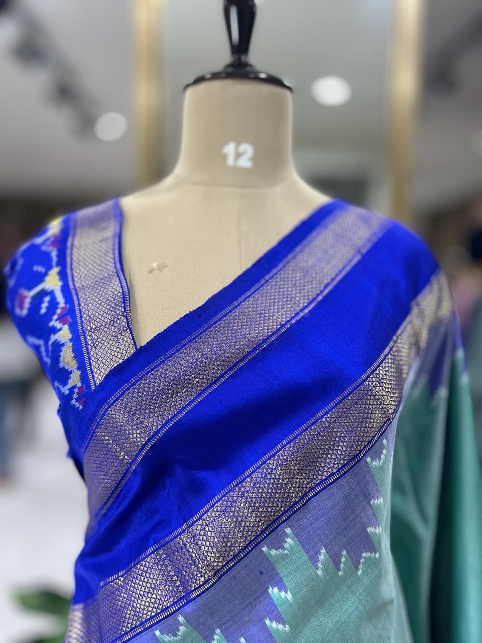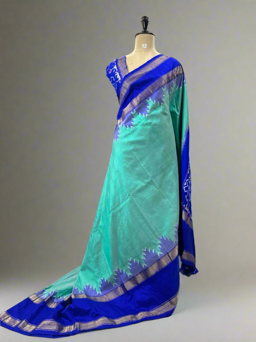 Aqua green ikkat Pochampally-12 pure silk saree