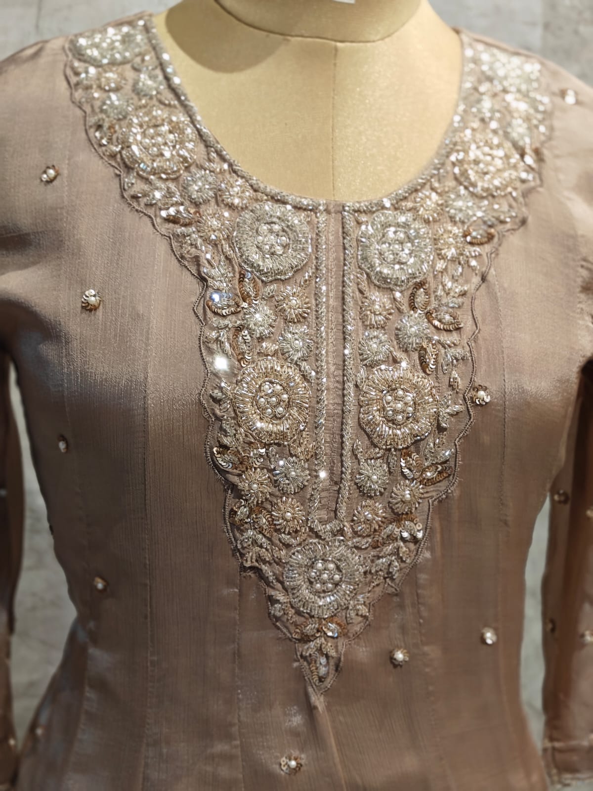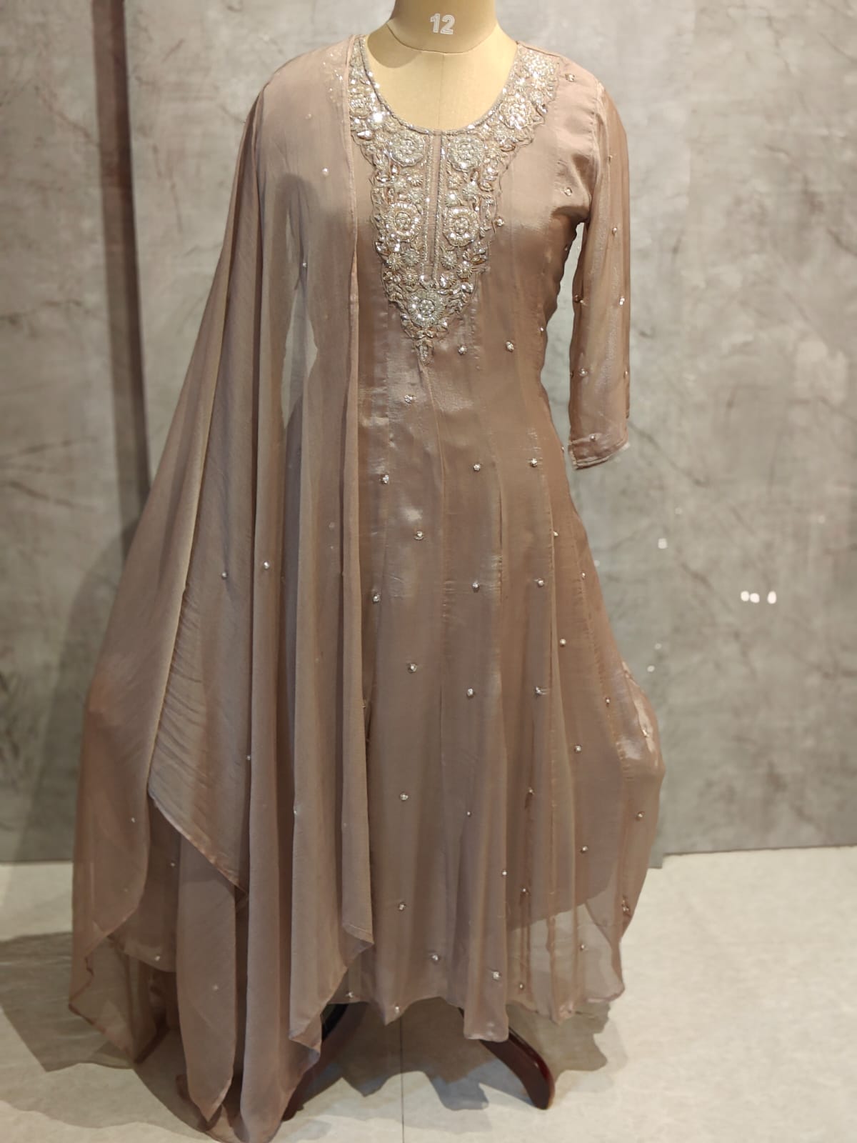 Beige Anarkali Chinnon Hand Embroidery Kurtha 567