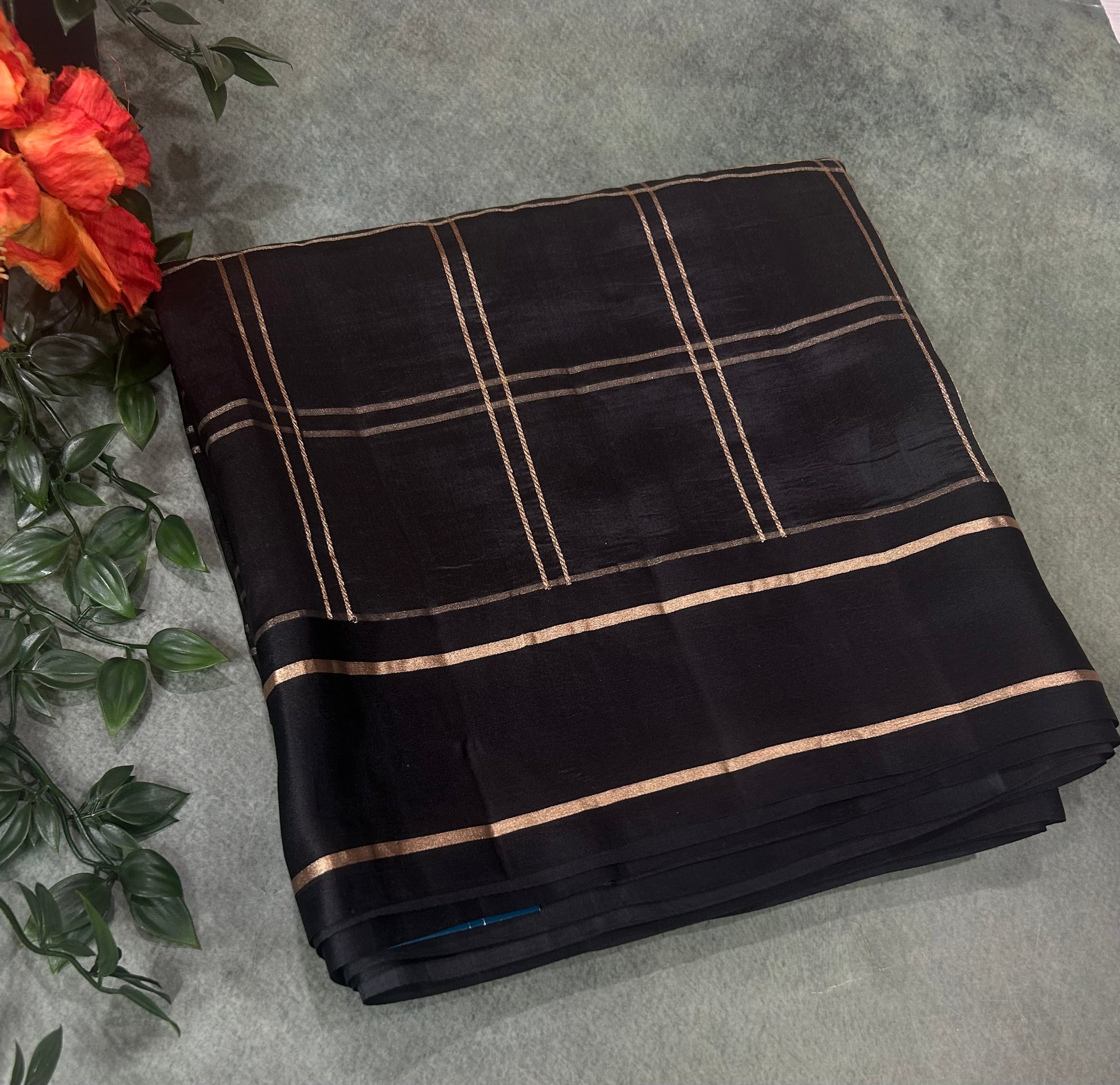 Black checks light weight Kathan -12 saree