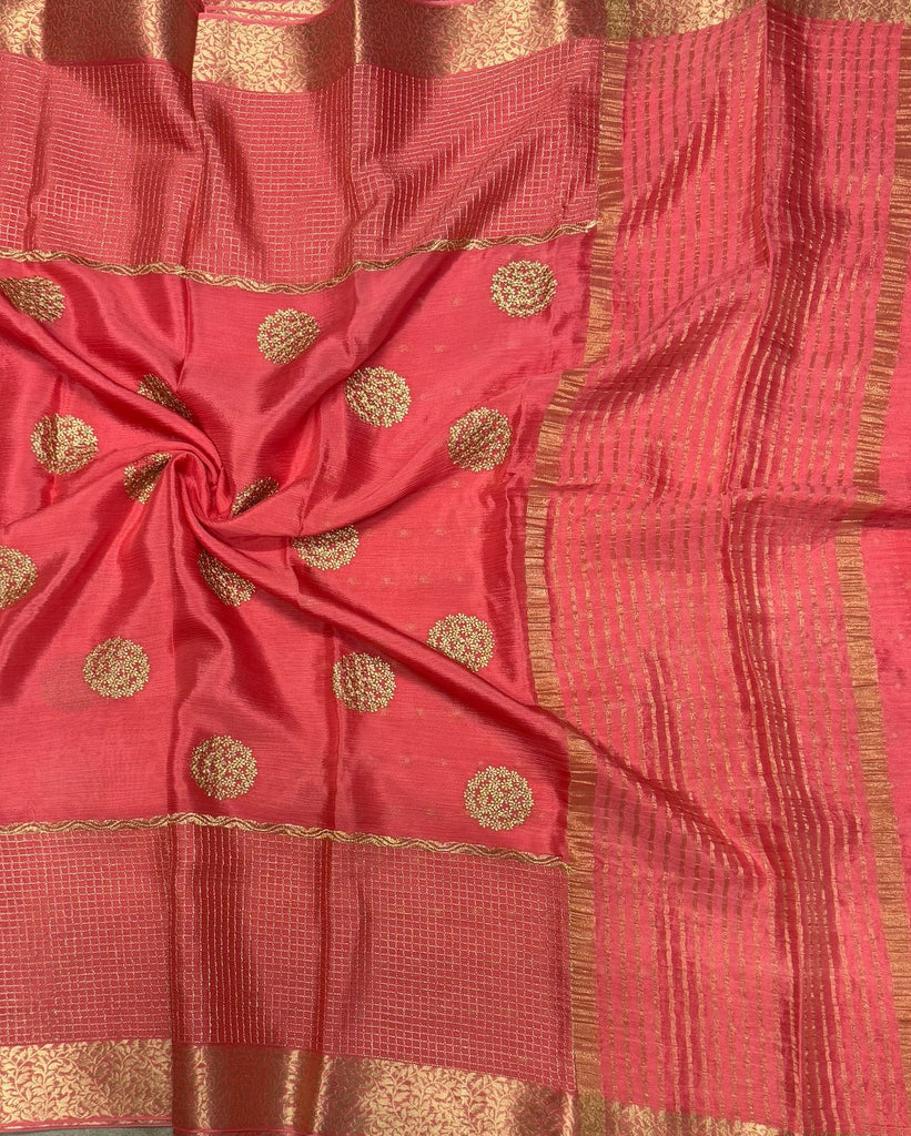 es. Our sarees are made using high-quality, authentic fabrics — whether it’s pure Banaras silk, handwoven cotton, Mysore silk, or georgette. Each product page mentions the fabric details clearly.
