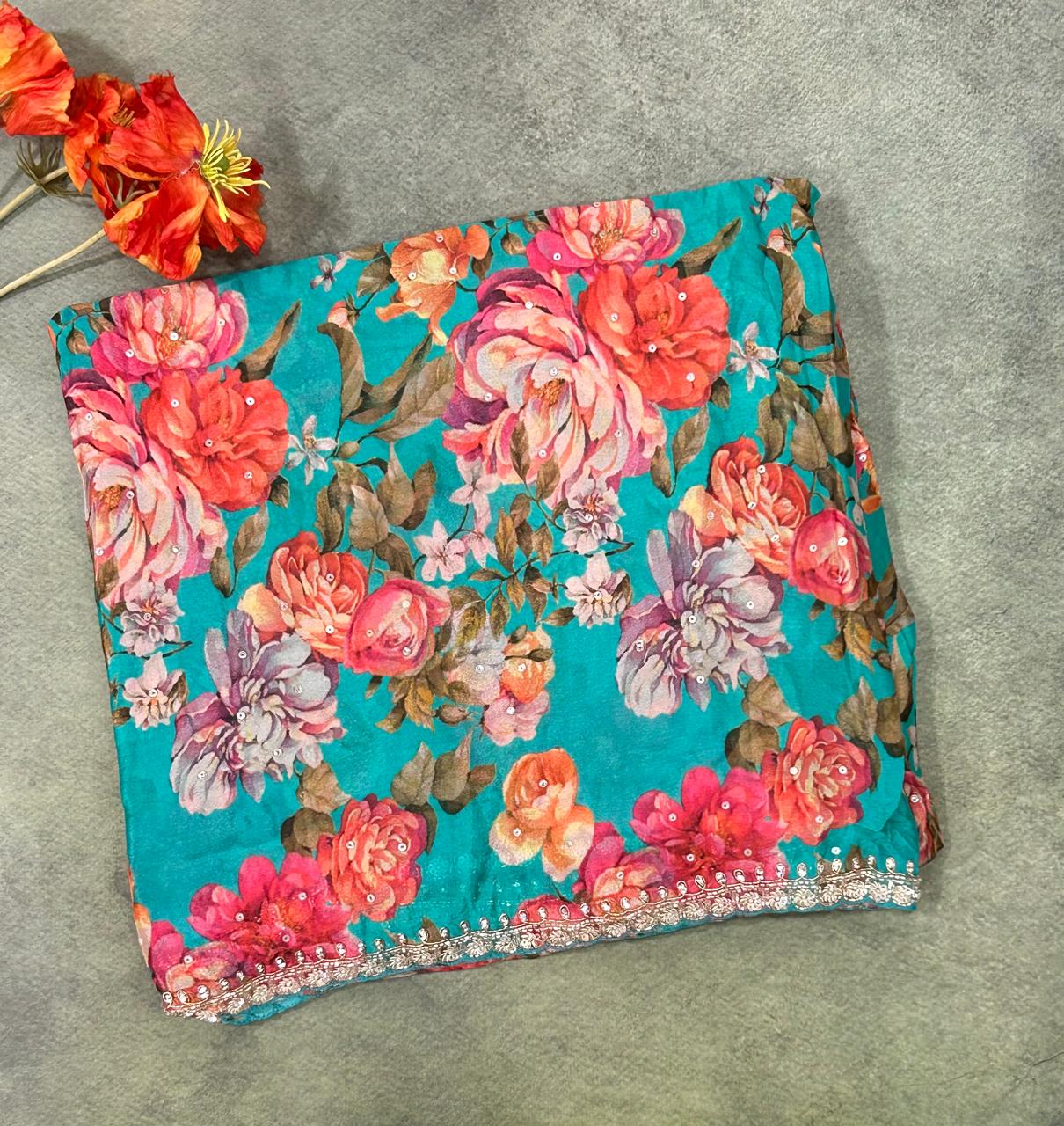 Rama green digital print georgette party wear saree
