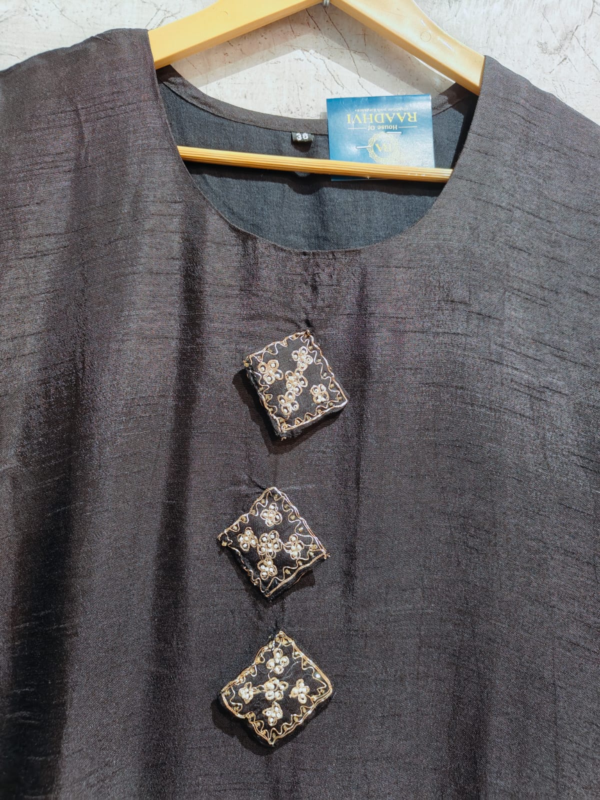 Black Dola Silk Kurtha 66 Hand Embroidery with Banarasi Dupatta