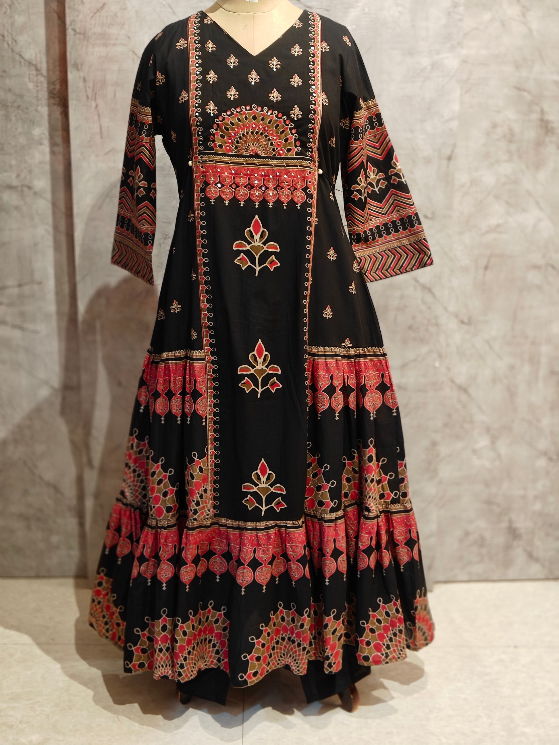 Black mul Cotton Anarkali Kurtha