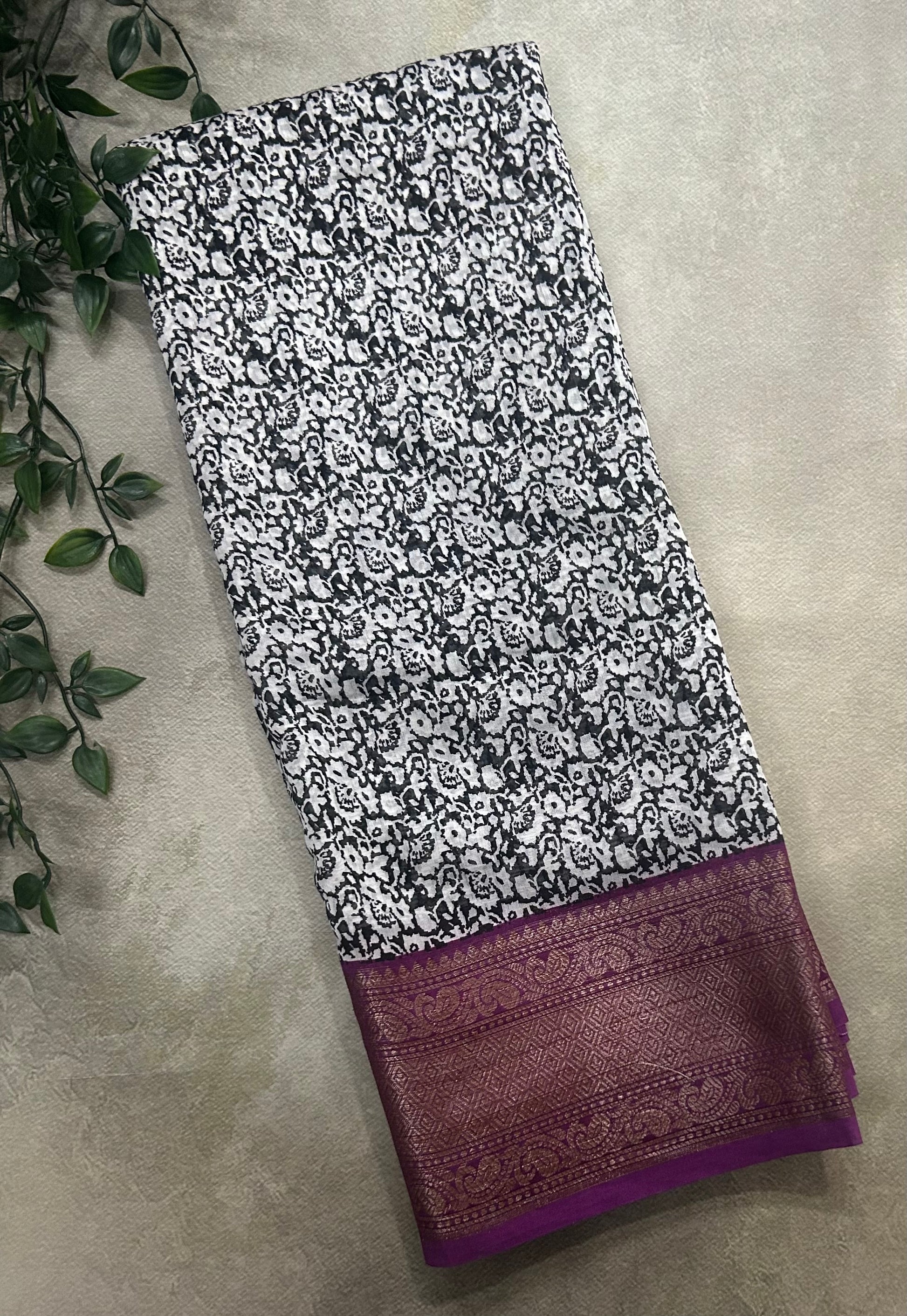 Black n white purple small border soft Tussar crepe saree