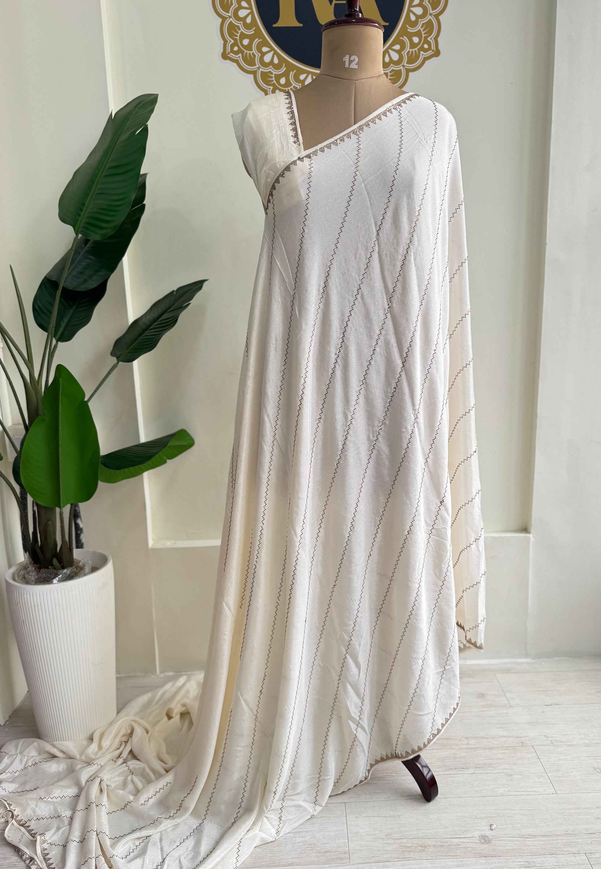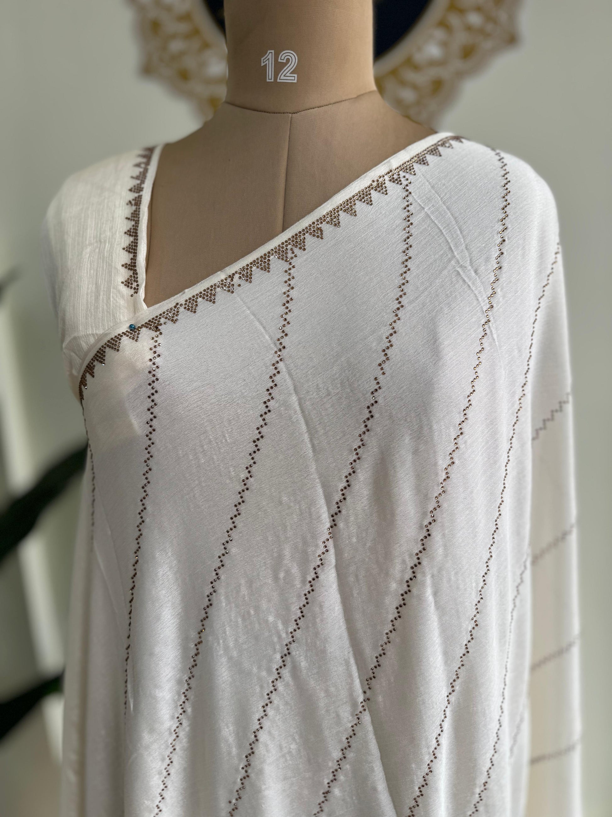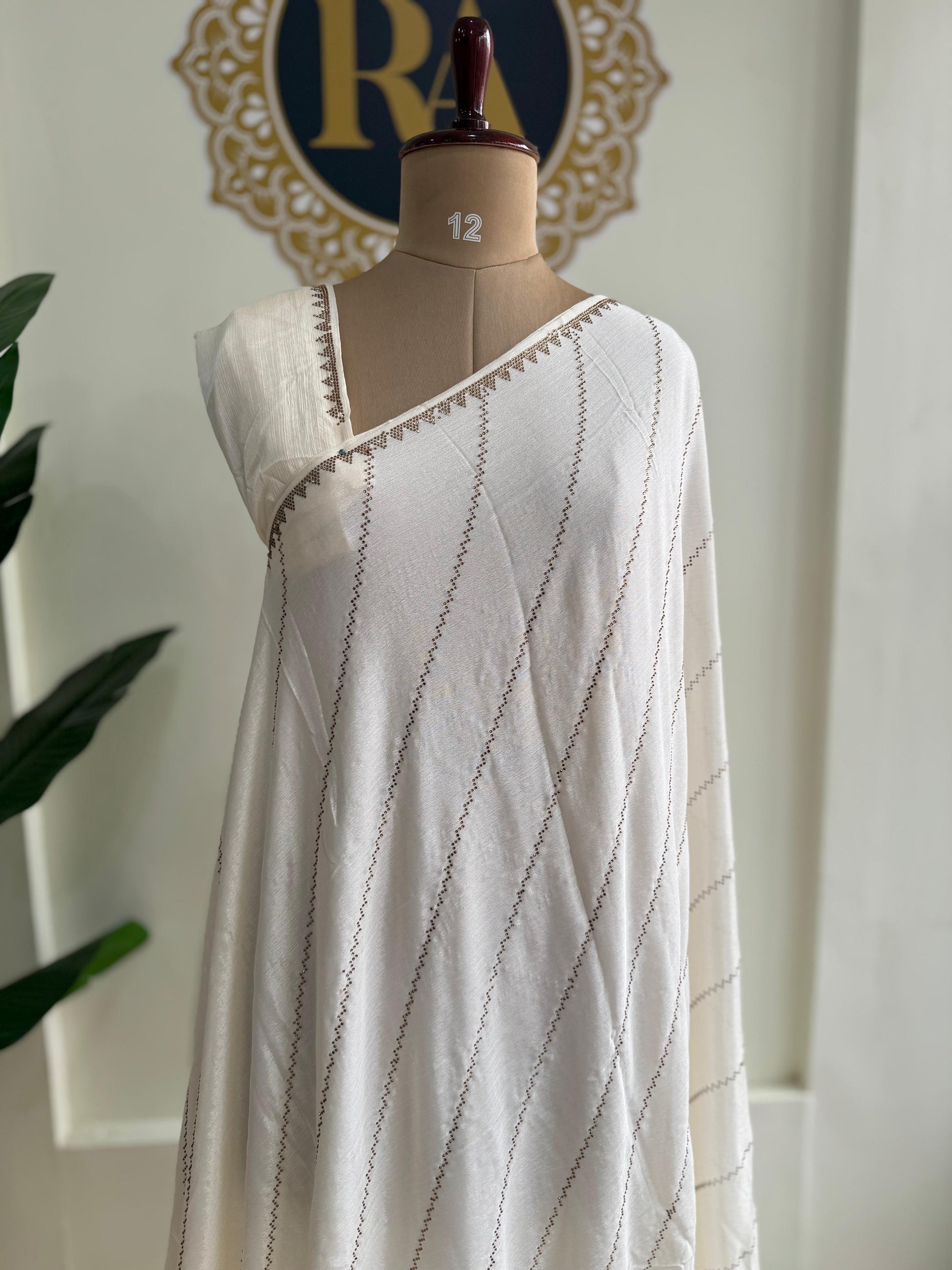 Cream stone work party wear Georgette saree