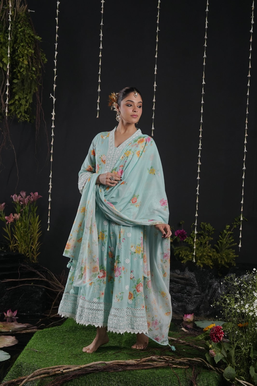 Blue Cotton Thread Work Anarkali Kurtha 742