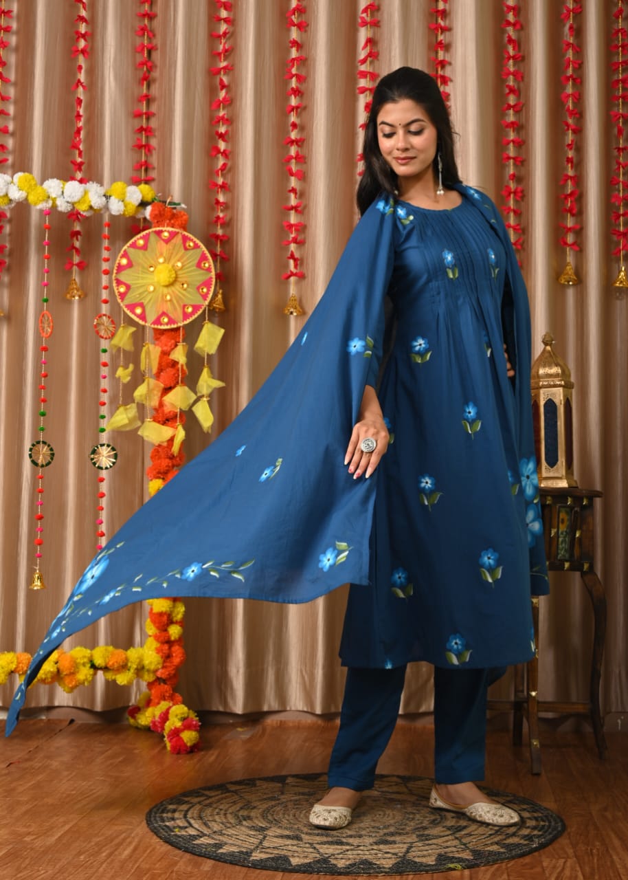 Blue Hand Painted Mul Cotton Airline Kurtha 517
