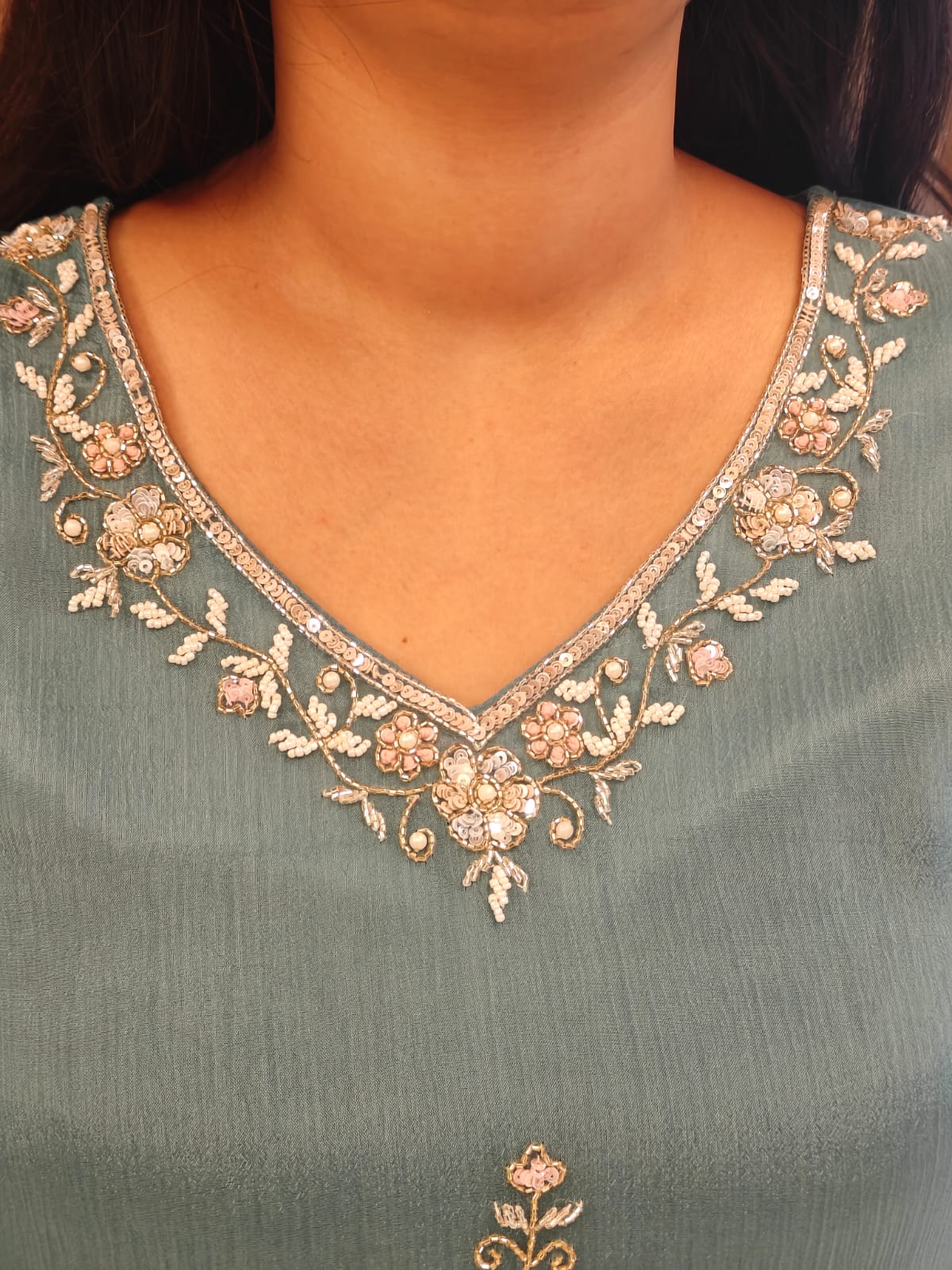 "Boomi" Sea Blue Designer Hand Embroidery Sharara party Kurtha set 301