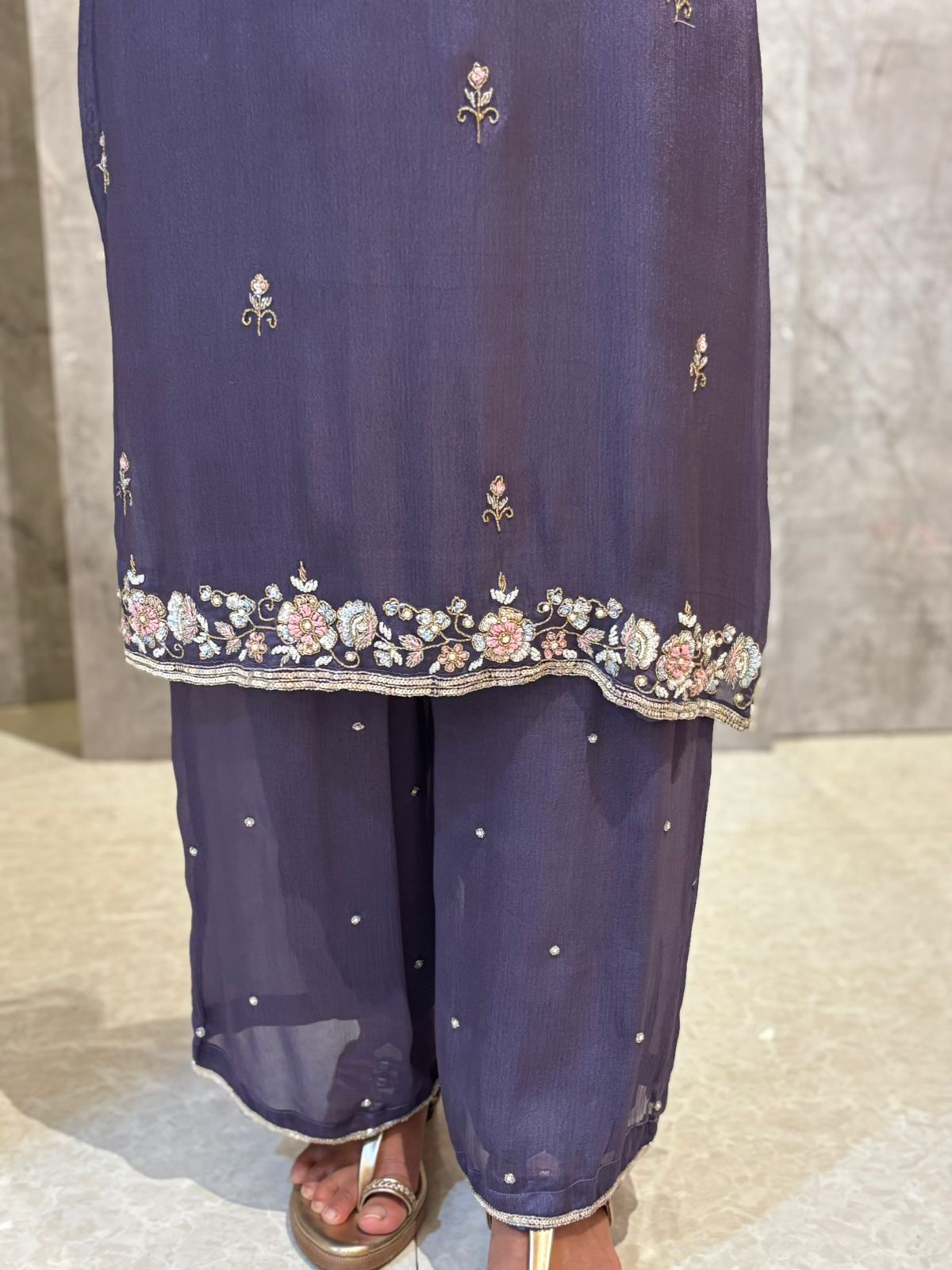 "Boomi" Dark Lavender Designer Hand Embroidery Sharara party Kurtha set