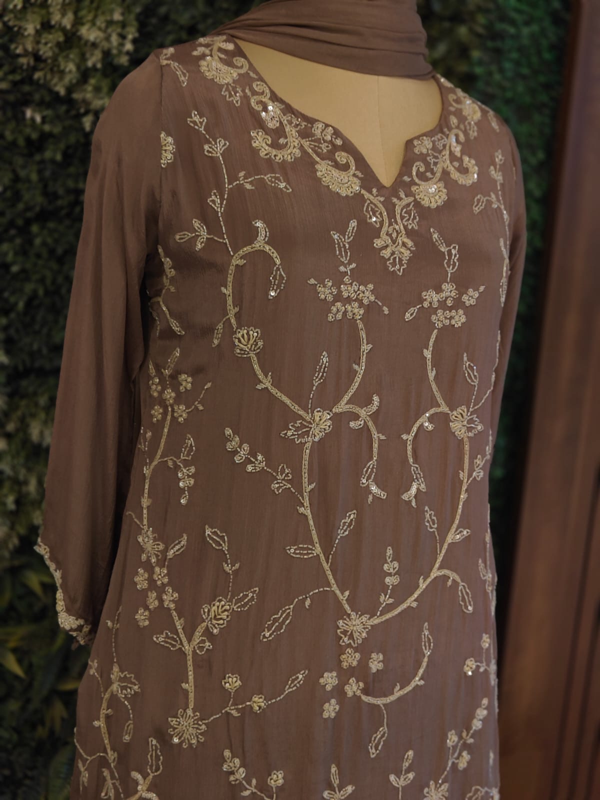 Brown Chinnon Hand Embroidery Sharara Kurtha 301