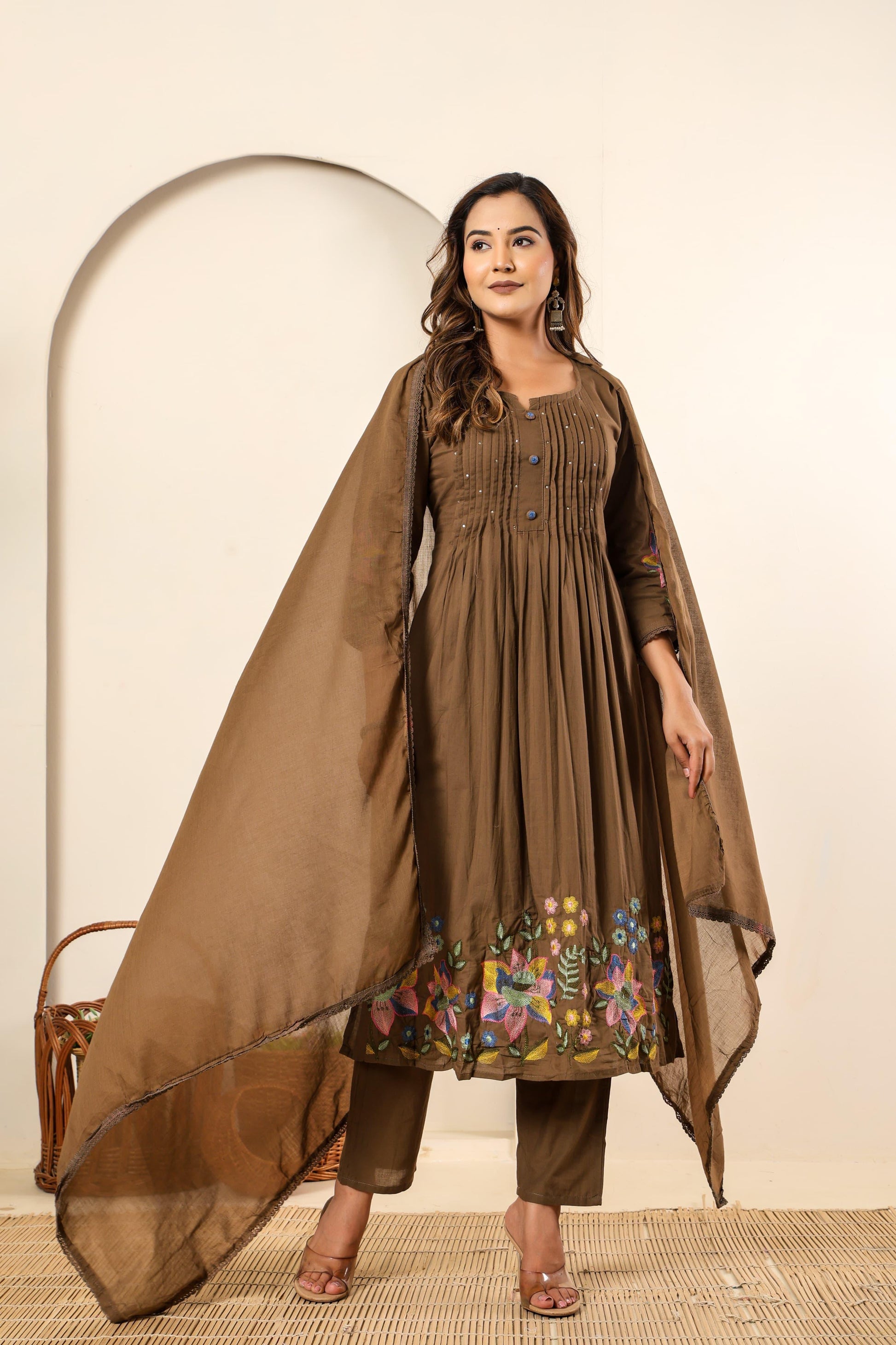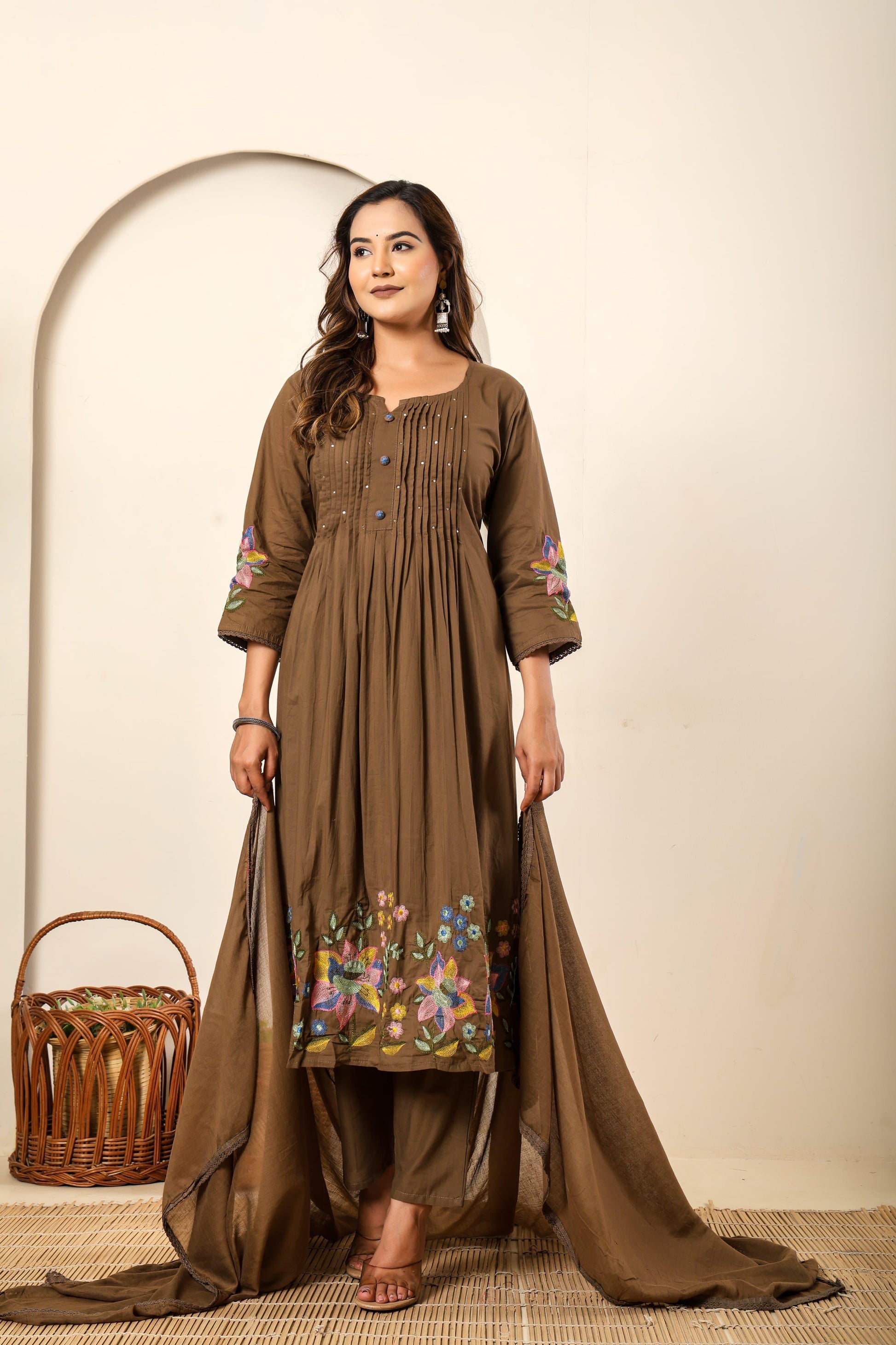 This Beautiful Kurtha set, as a thread embroidery work on the top , which adds a touch of elegance to its overall appearance in a cotton fabric.