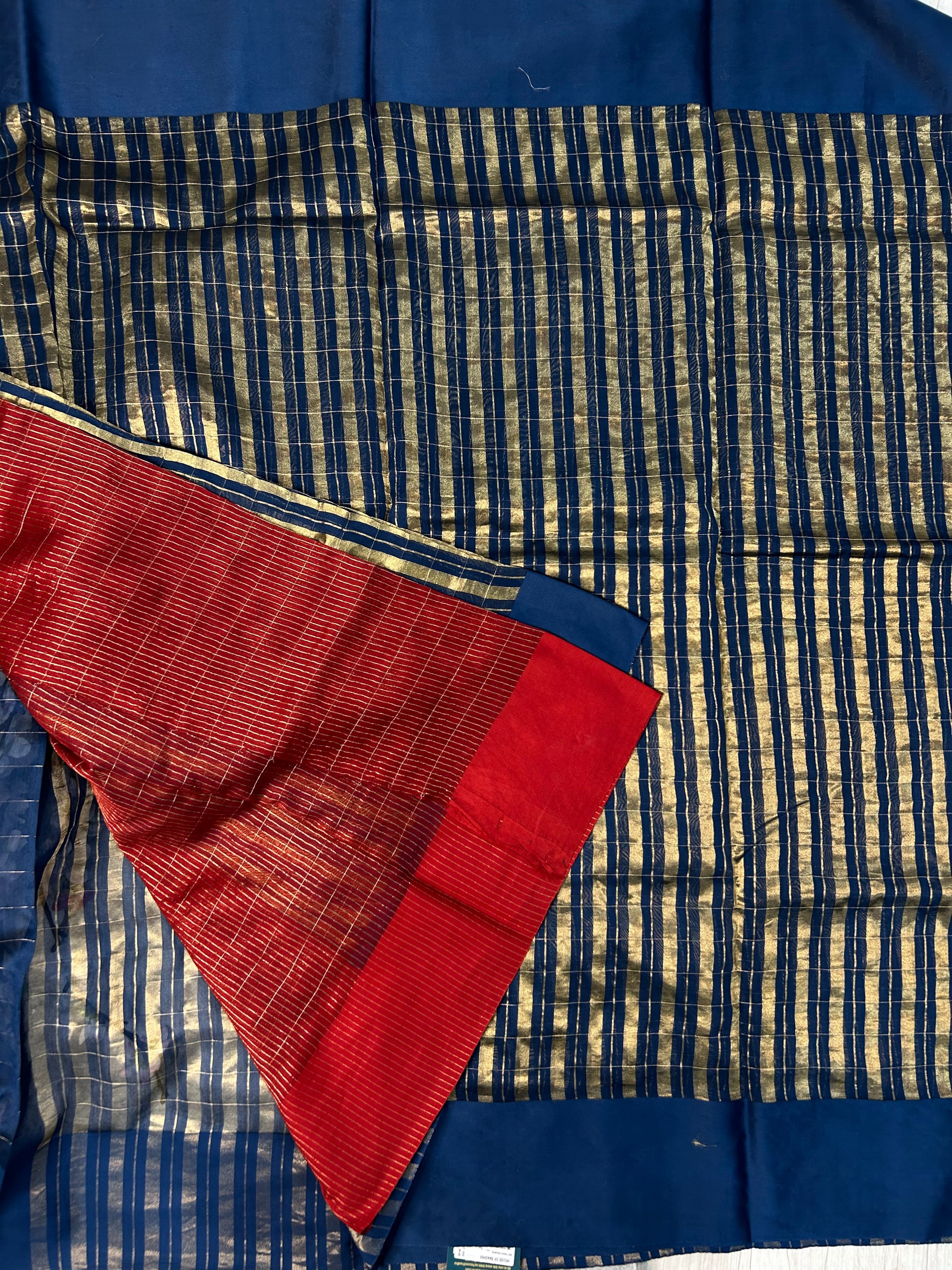 Blue pure tissue stirpes satin border saree 101