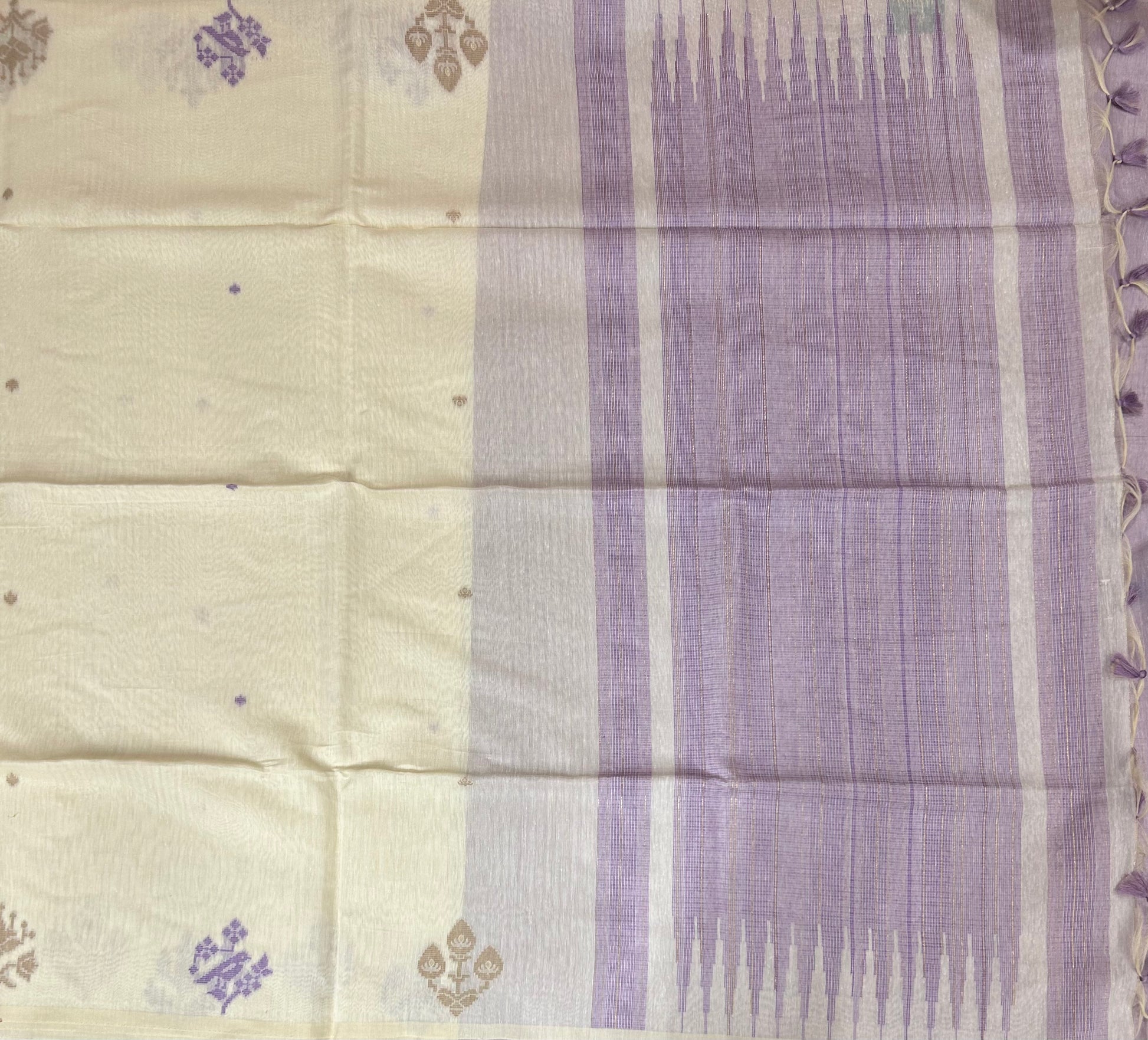 Cream n lilac pure linen saree