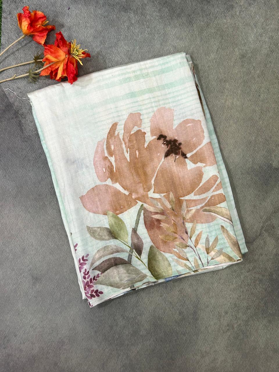 Pastel green mulberry silk digital print saree