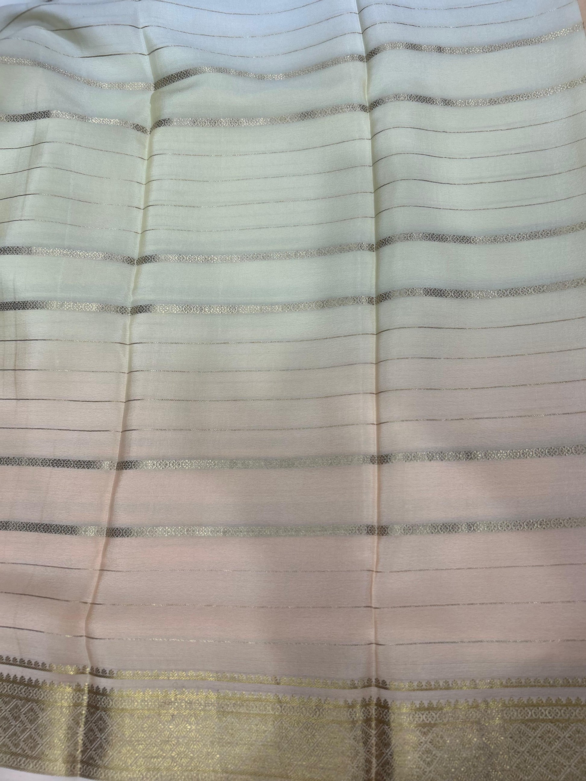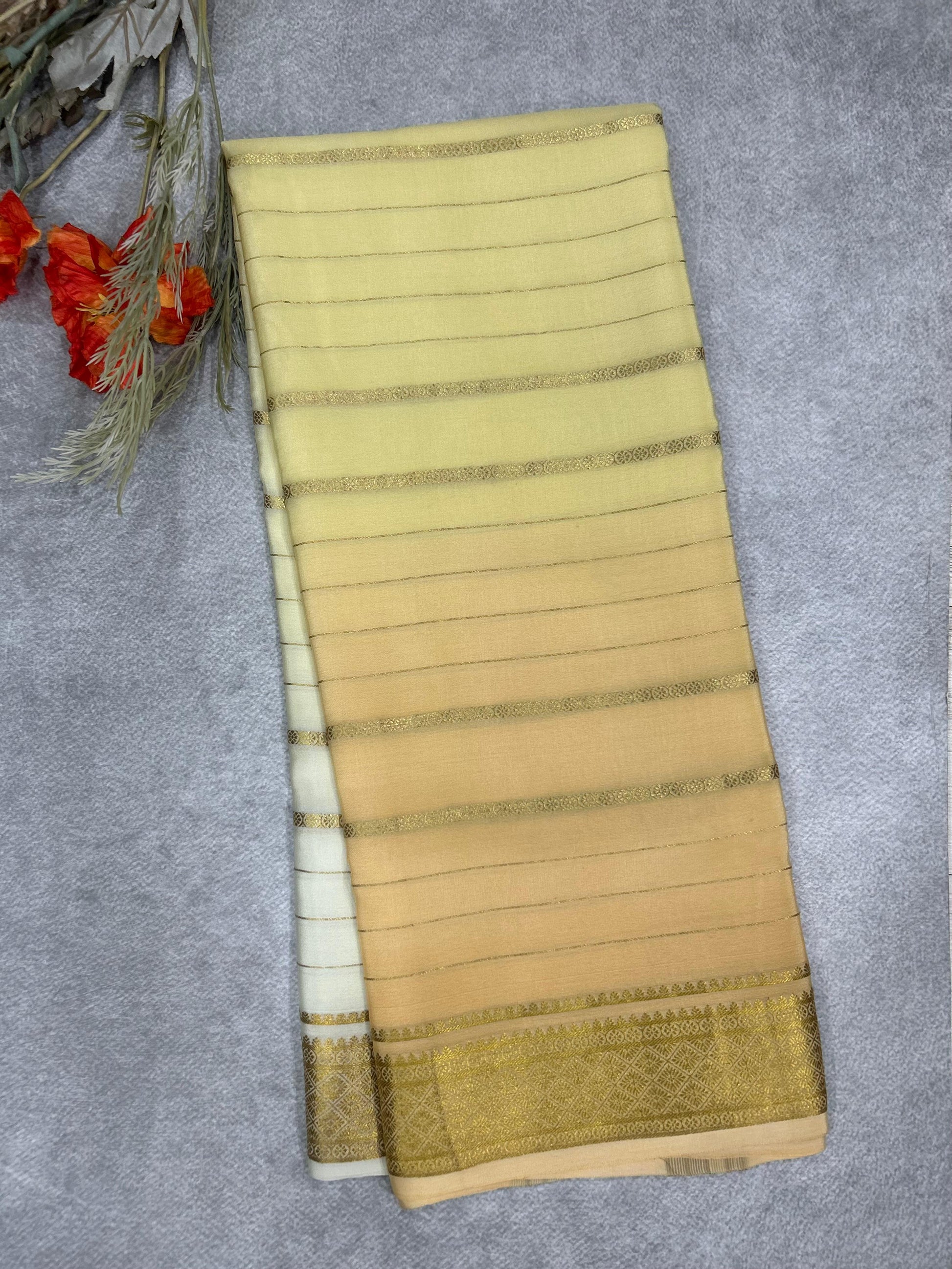 Discover the timeless beauty of this Brush Dye Pure Mysore Silk Saree, crafted with the finest silk and enhanced by elegant brush dye patterns. Known for its rich texture and graceful drape, Mysore silk is celebrated for its luxurious feel and traditional charm. The unique brush dye effect adds a contemporary artistic touch, making this saree perfect for weddings, festive occasions, and sophisticated gatherings.