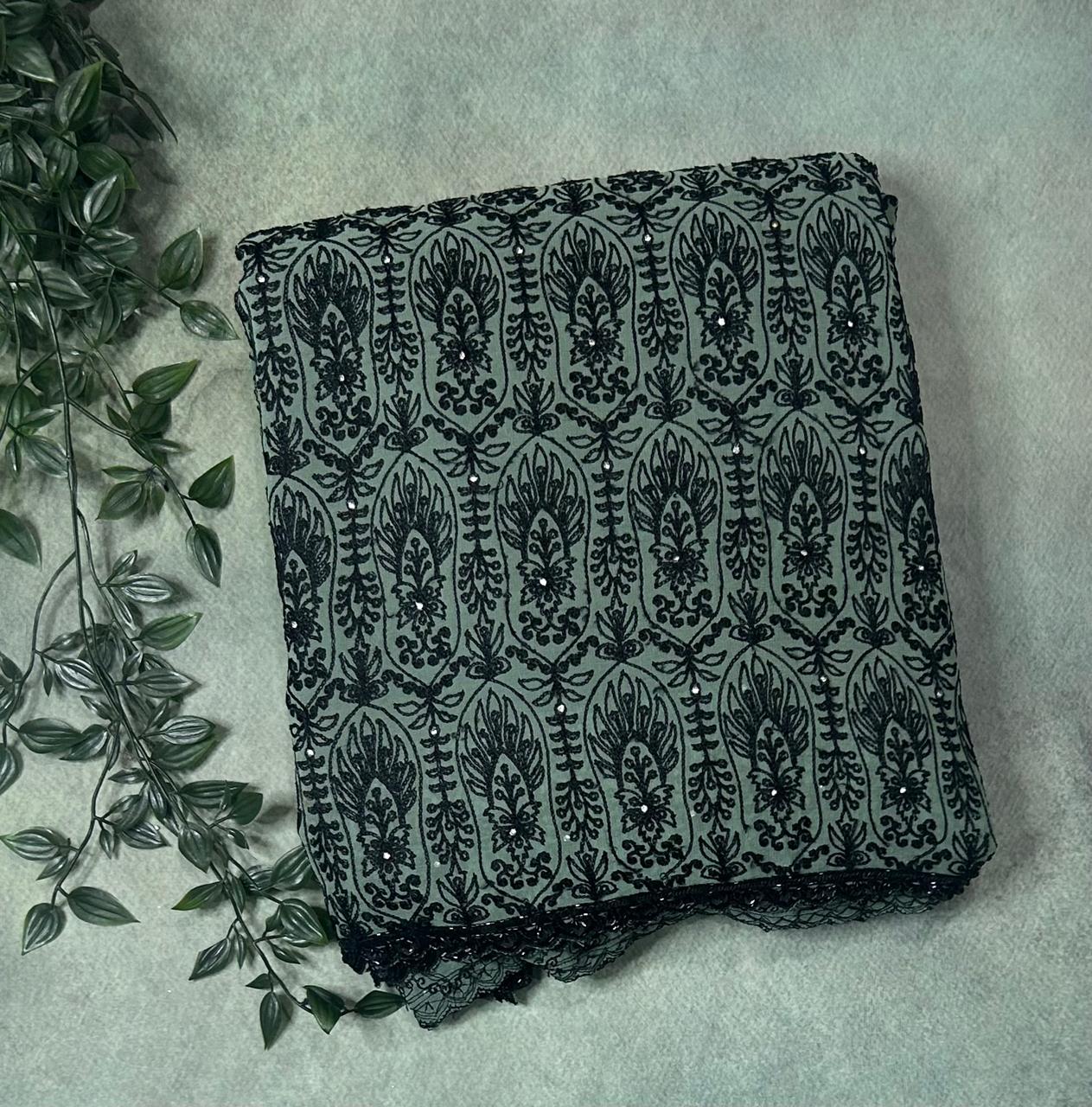 Dark Pastel green chickankari pure georgette-09 party wear saree