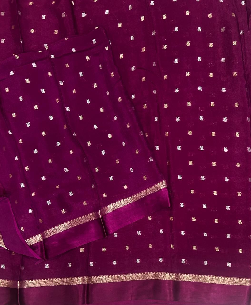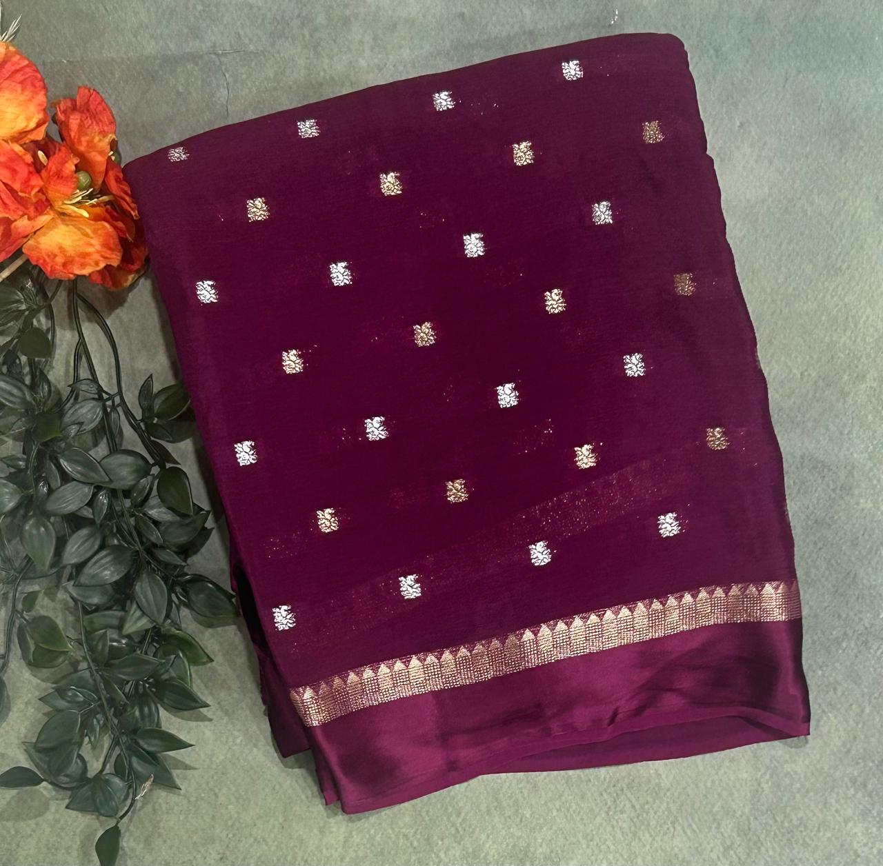 Dark wine chinnon satin border 103 saree