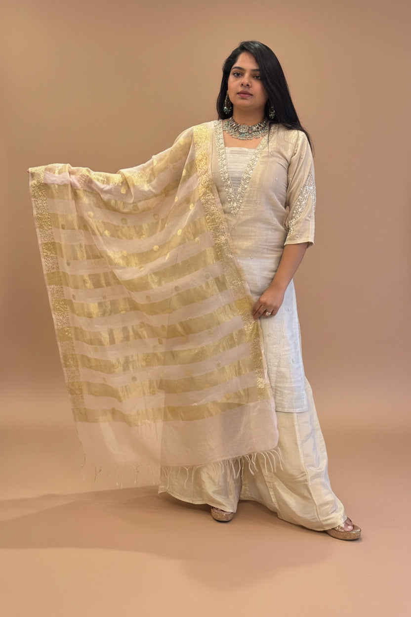 Gold Shimmer Tissue Hand Embroidery Kurtha 151