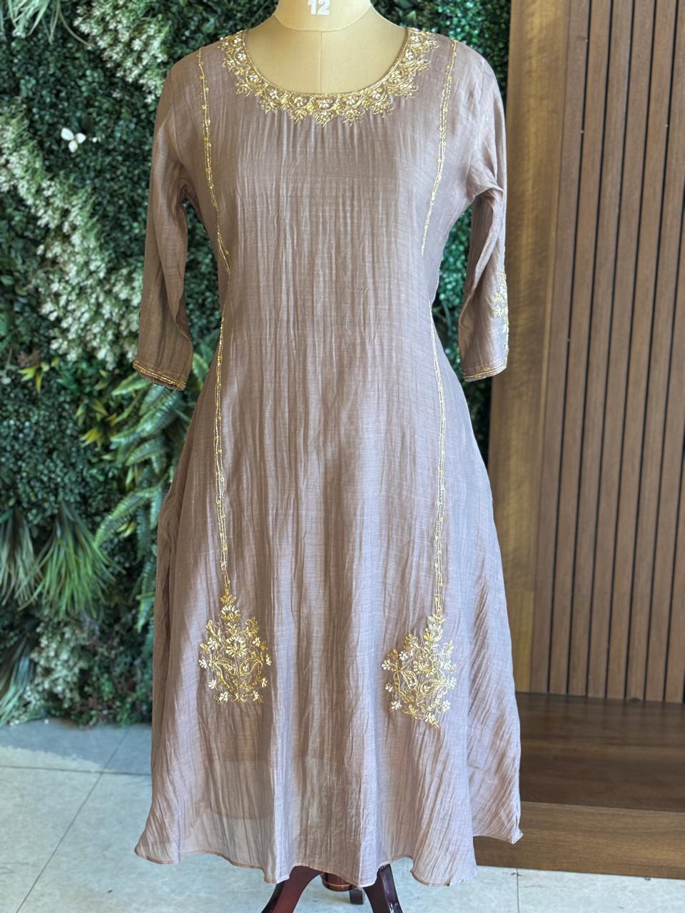 Gray Mul Chanderi Airline Handwork Kurtha 581