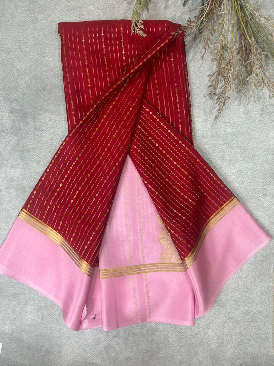 Red stripes pure mysore silk-12 saree