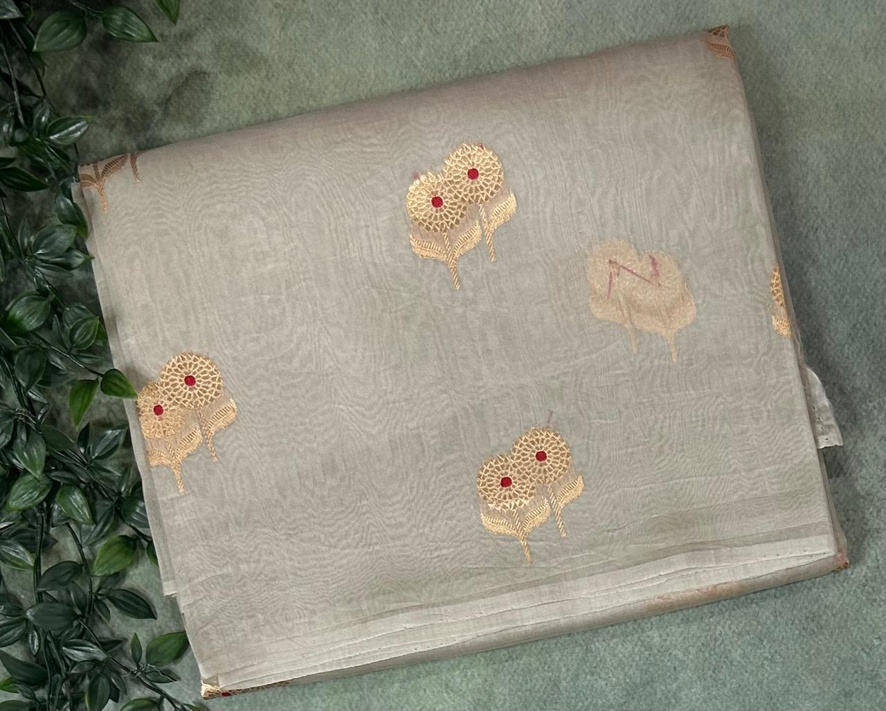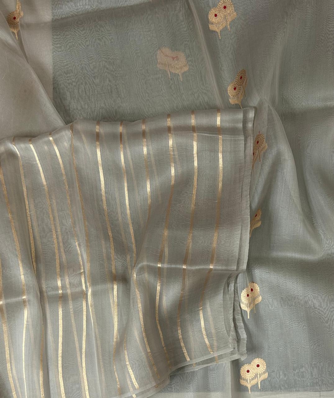 Grey meena pure kora 12 organza silk saree