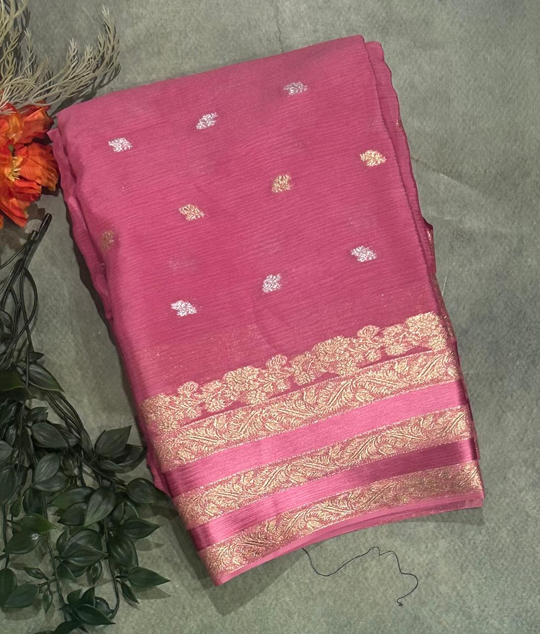 Light pink chinnon satin border 103 saree