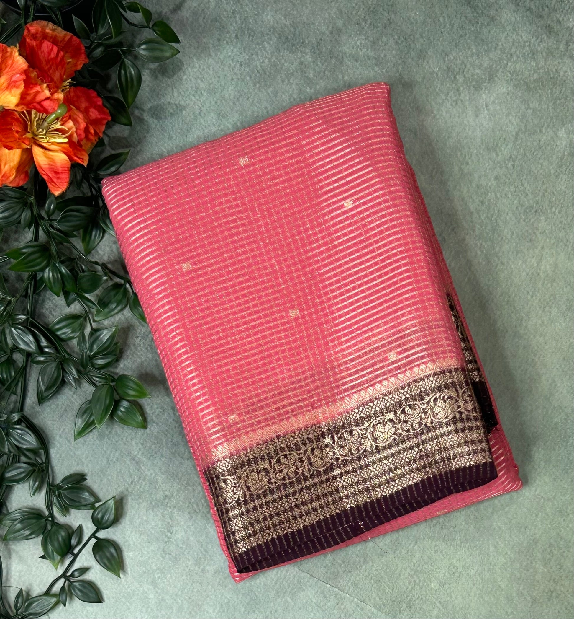 The soft, lightweight fabric offers a graceful fall and subtle sheen — perfect for festive occasions, weddings, or elegant evening events. The rich pallu enhances the overall look, making it a must-have addition to your ethnic collection.