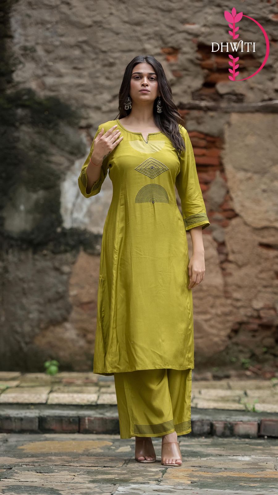 This Beautiful cord set , as a round neck pattern with, which adds a touch of elegance to the outfit. which appearance in a cotton fabric.
