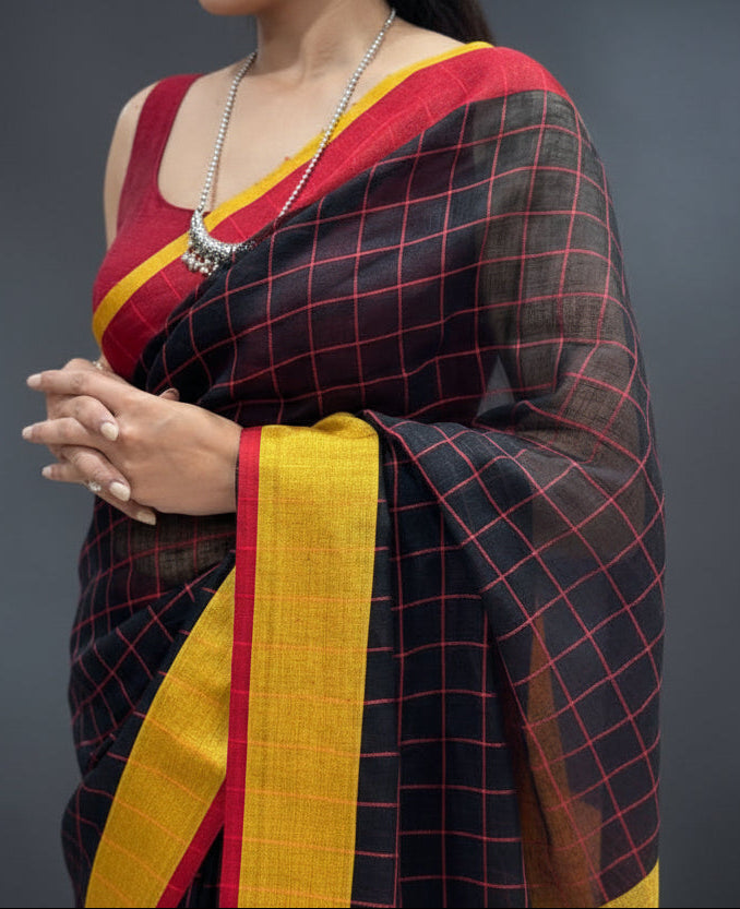 es. Our sarees are made using high-quality, authentic fabrics — whether it’s pure Banaras silk, handwoven cotton, Mysore silk, or georgette. Each product page mentions the fabric details clearly.