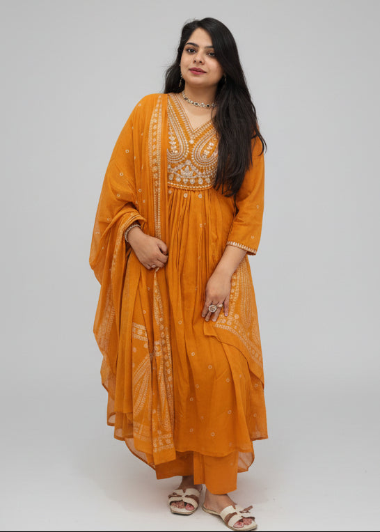 Orange Cotton Hand Embroidery Airline Kurtha 677