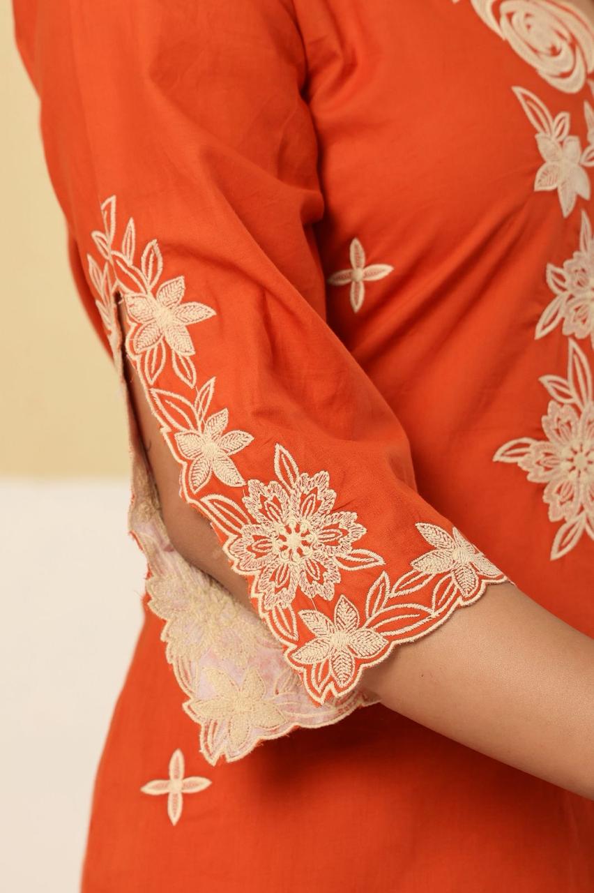 Orange Cotton Thread Embroidery Straight Fit pulse size Kurtha