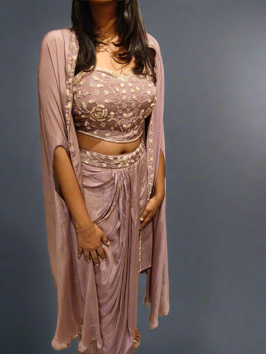 “Pari" Lilac Indo-western handwork Top, Skirt and Cape kurtha 42