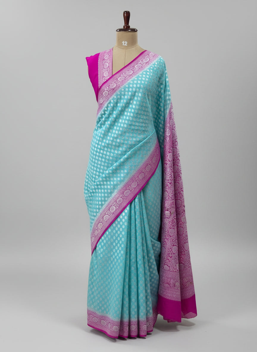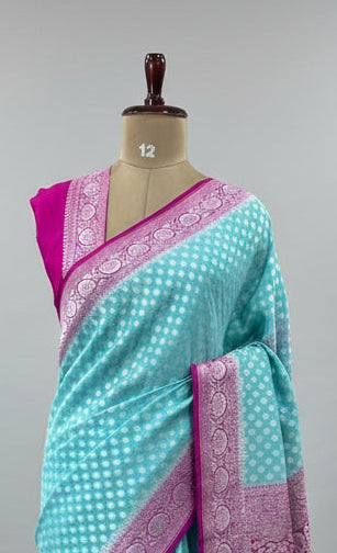 Sky blue n rani pink banarasi Pure Georgette Saree-12