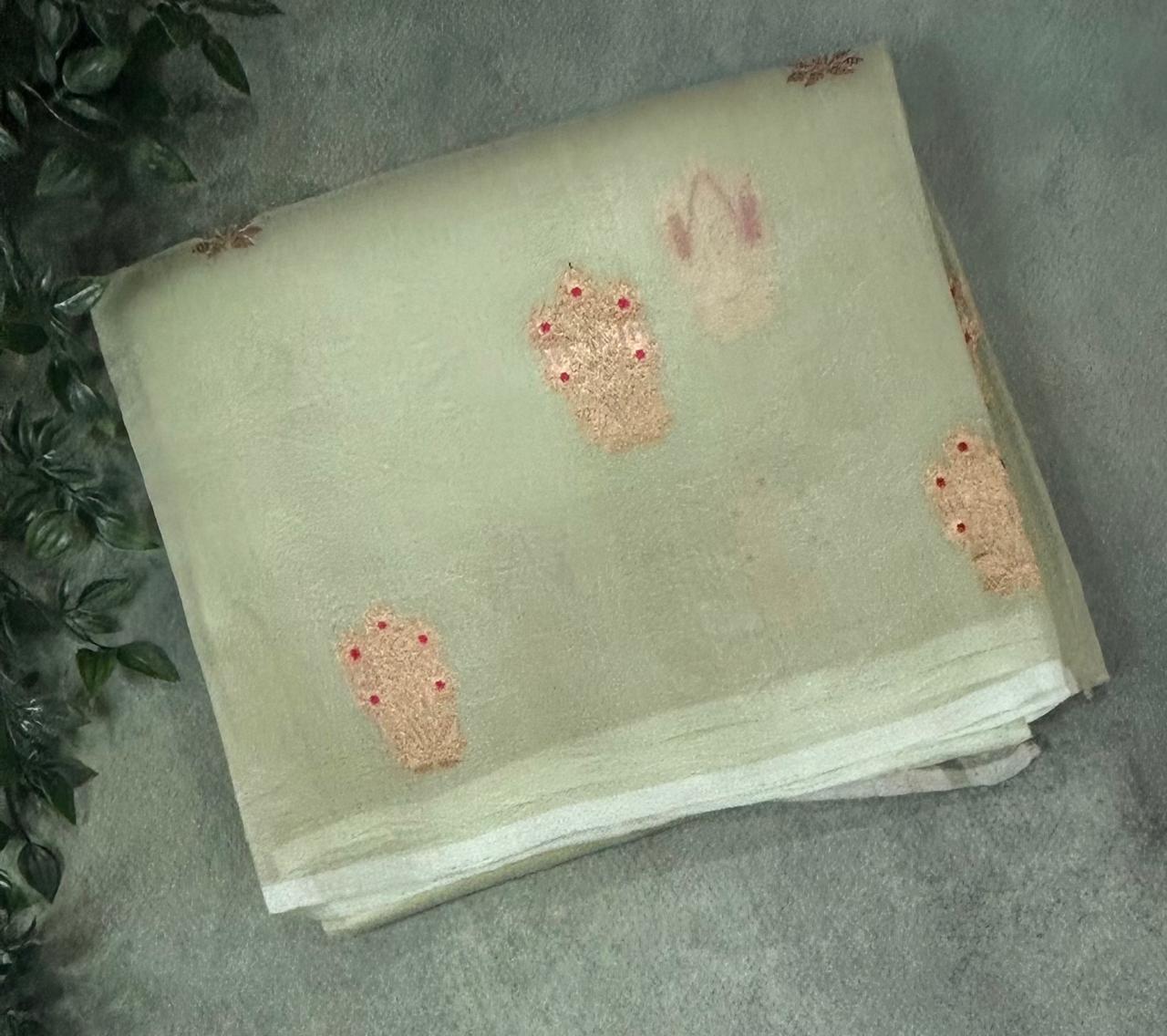 Pastel green kora organza silk saree