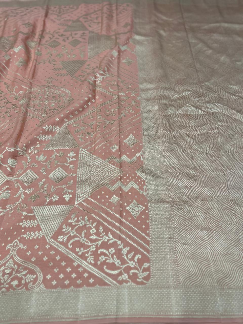Peach pure silver benarasi 103 crepe silk saree