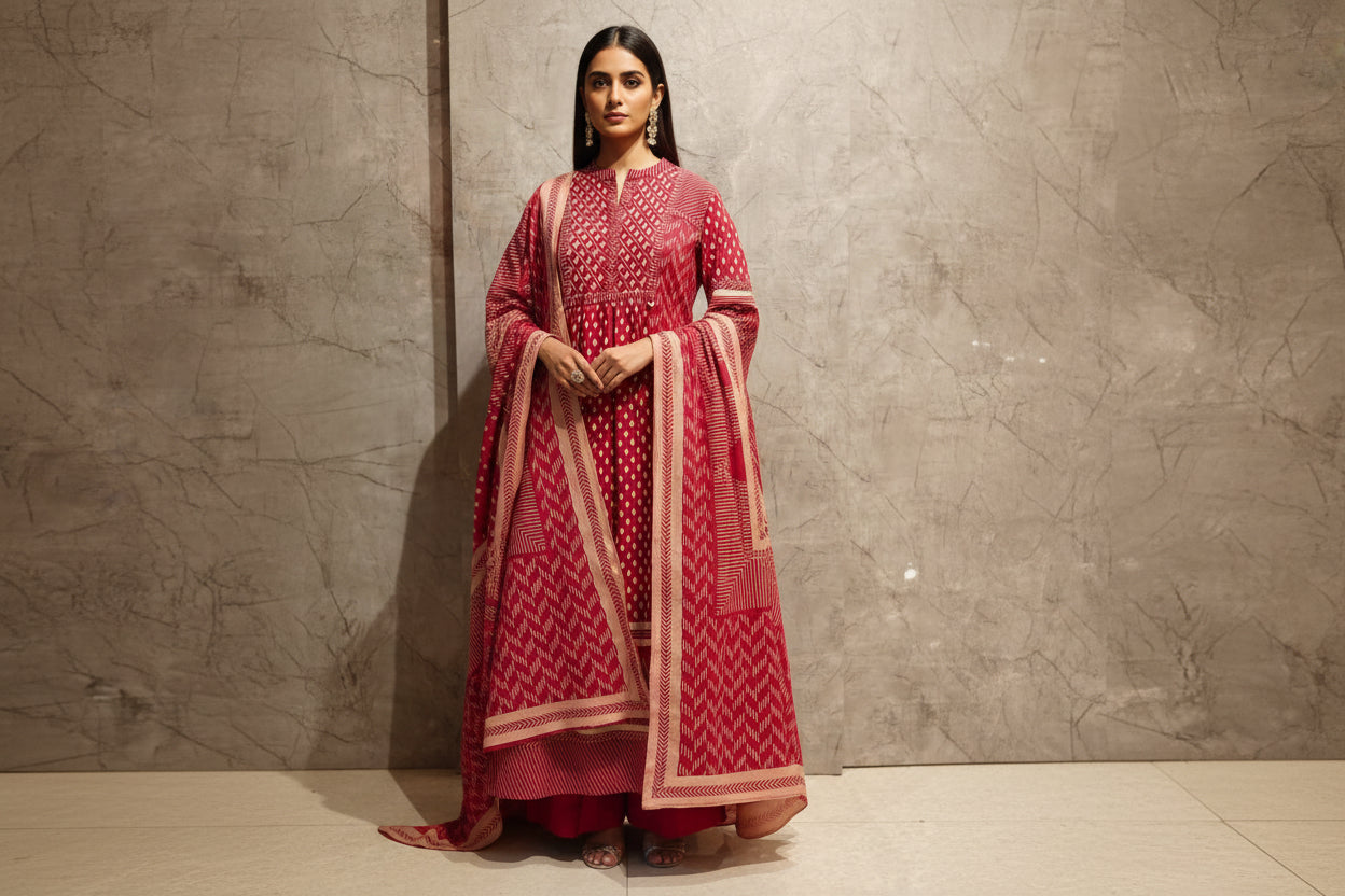 This Beautiful Kurtha set, as a embroidery work on the neckline in a block print anarkali pattern, which adds a touch of elegance to its overall appearance in a cotton fabric.