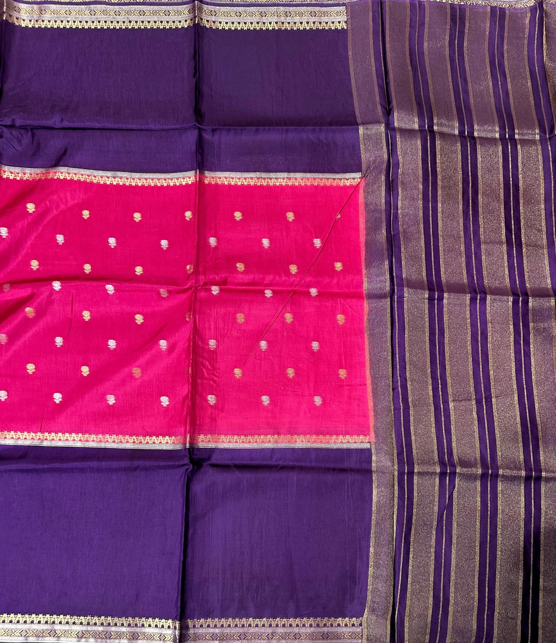 Pink n purple Semi Mysore-09 Silk Saree with Beautiful Zari Border