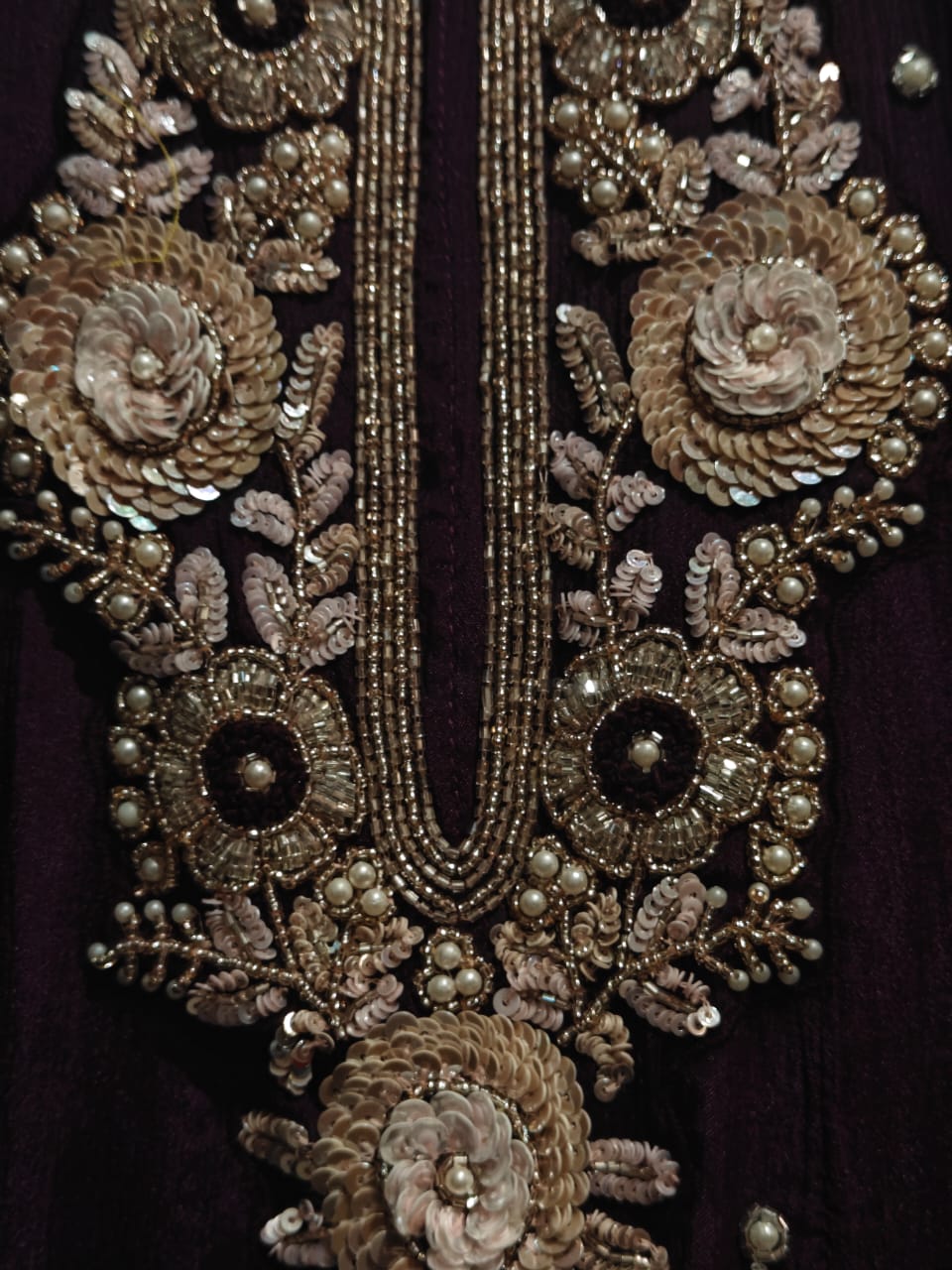 Purple Anarkali Chinnon Hand Embroidery Kurtha 567