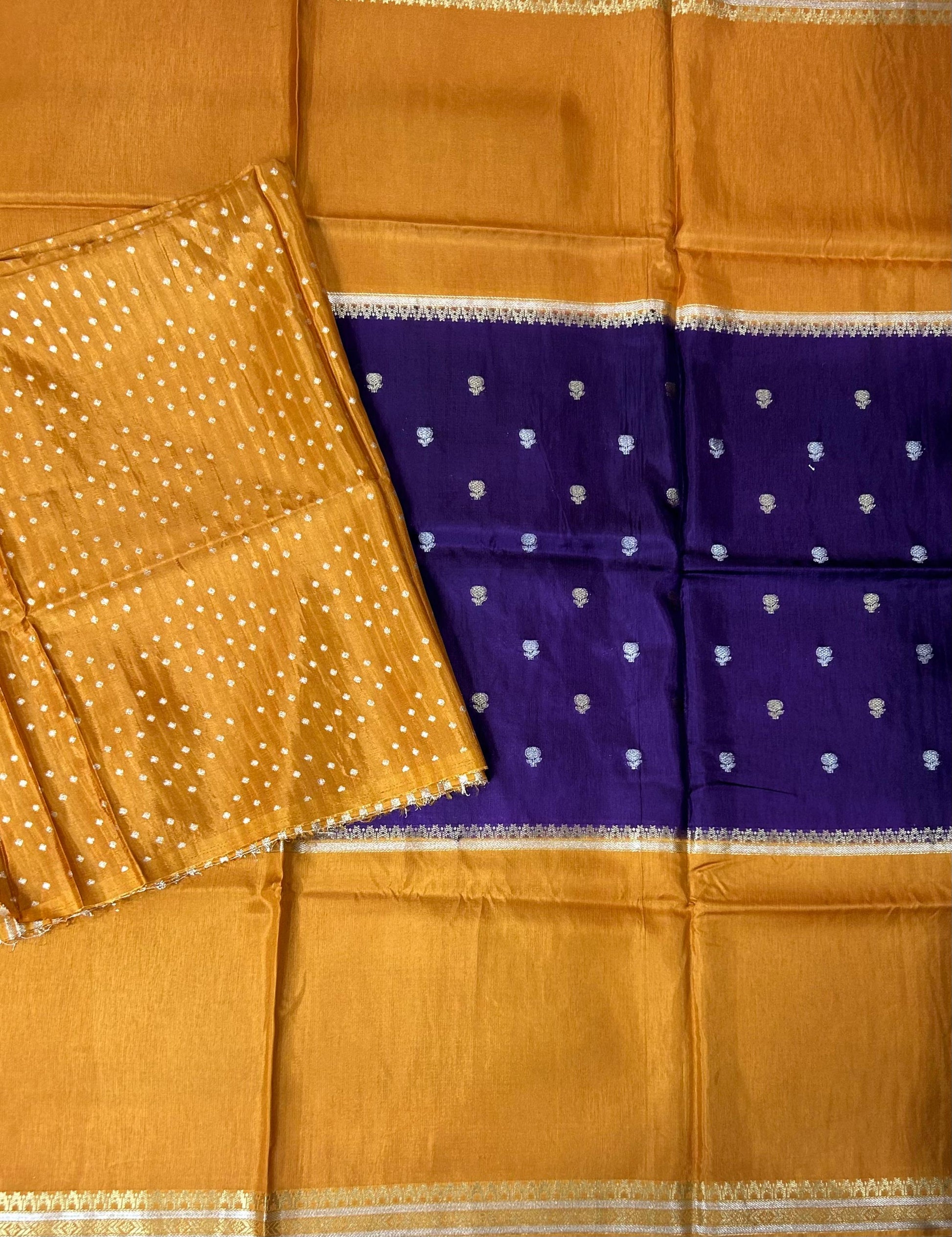 Purple n light orange Elegant Semi Mysore-09 Silk Saree with Beautiful Zari Border