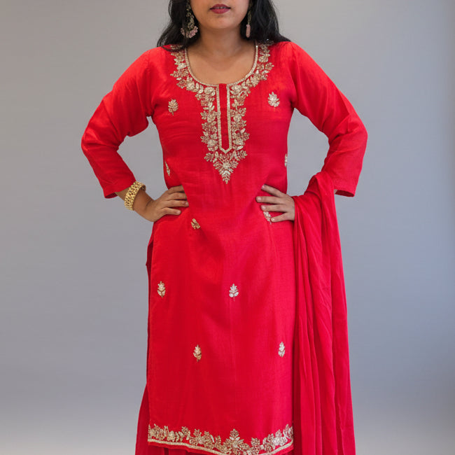 Red Dola Silk Hand Embroidery Sharara Kurtha 301