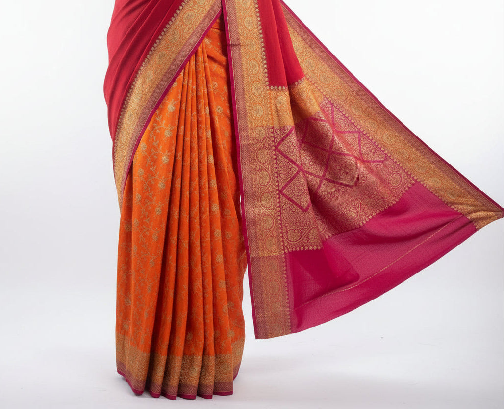 es. Our sarees are made using high-quality, authentic fabrics β whether itβs pure Banaras silk, handwoven cotton, Mysore silk, or georgette. Each product page mentions the fabric details clearly.