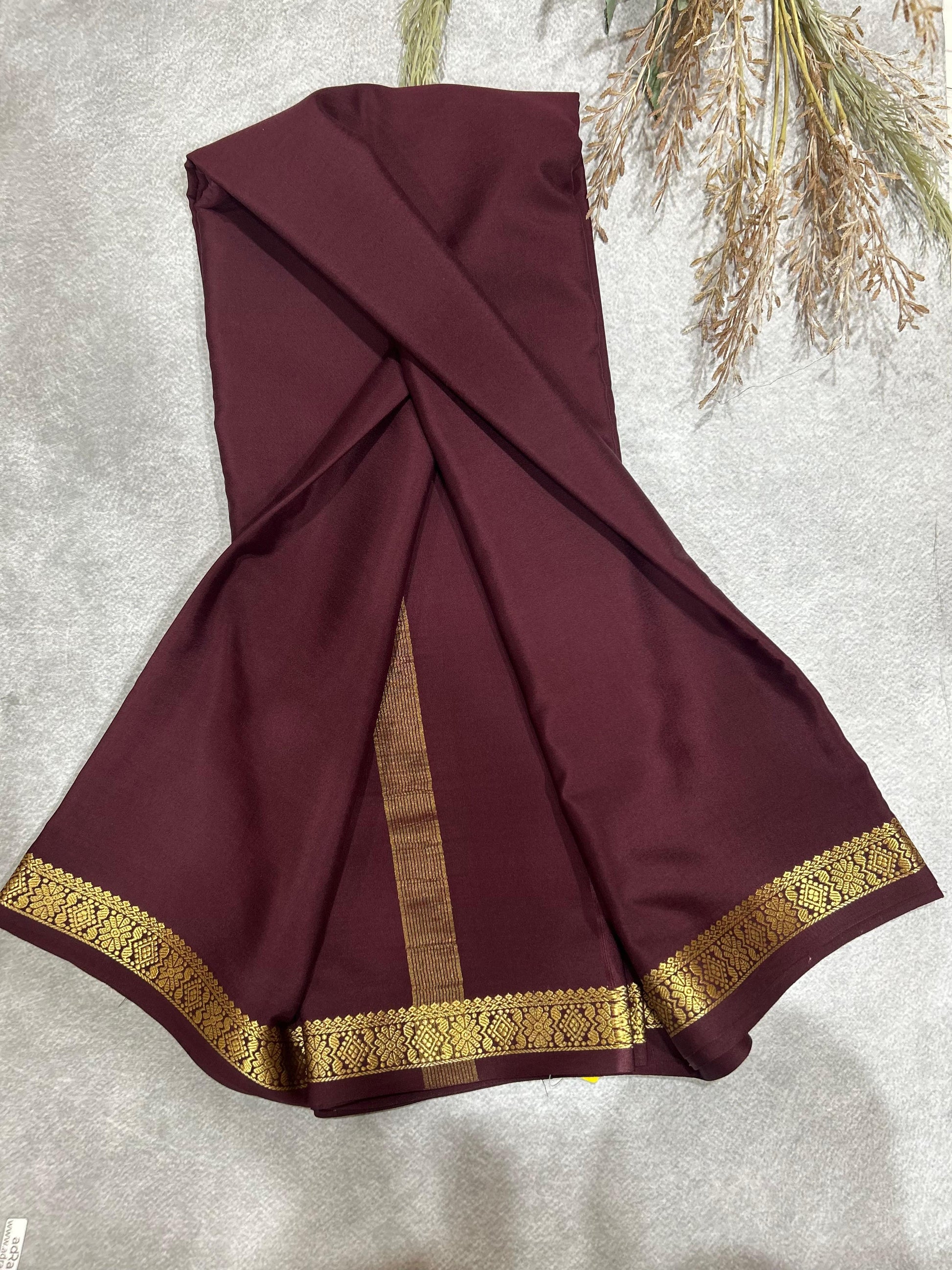Brown pure mysore silk-140GSM saree