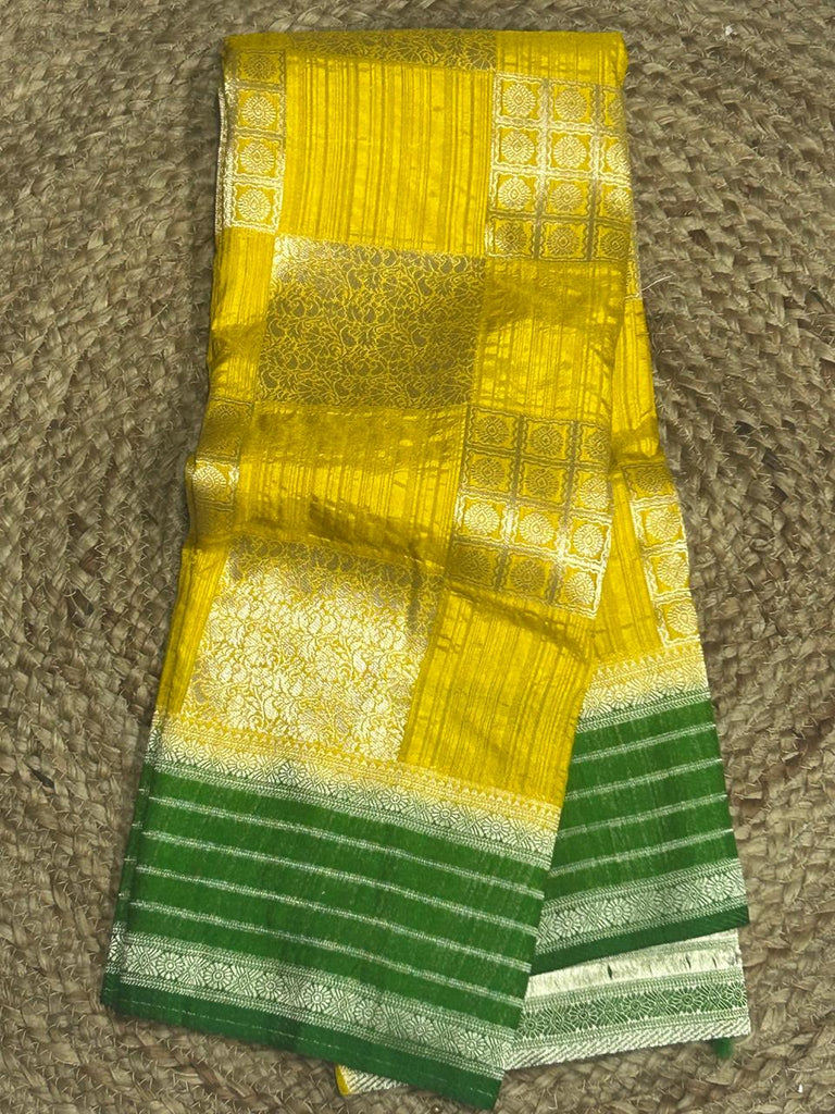Yellow n green seilver zari semi silk saree