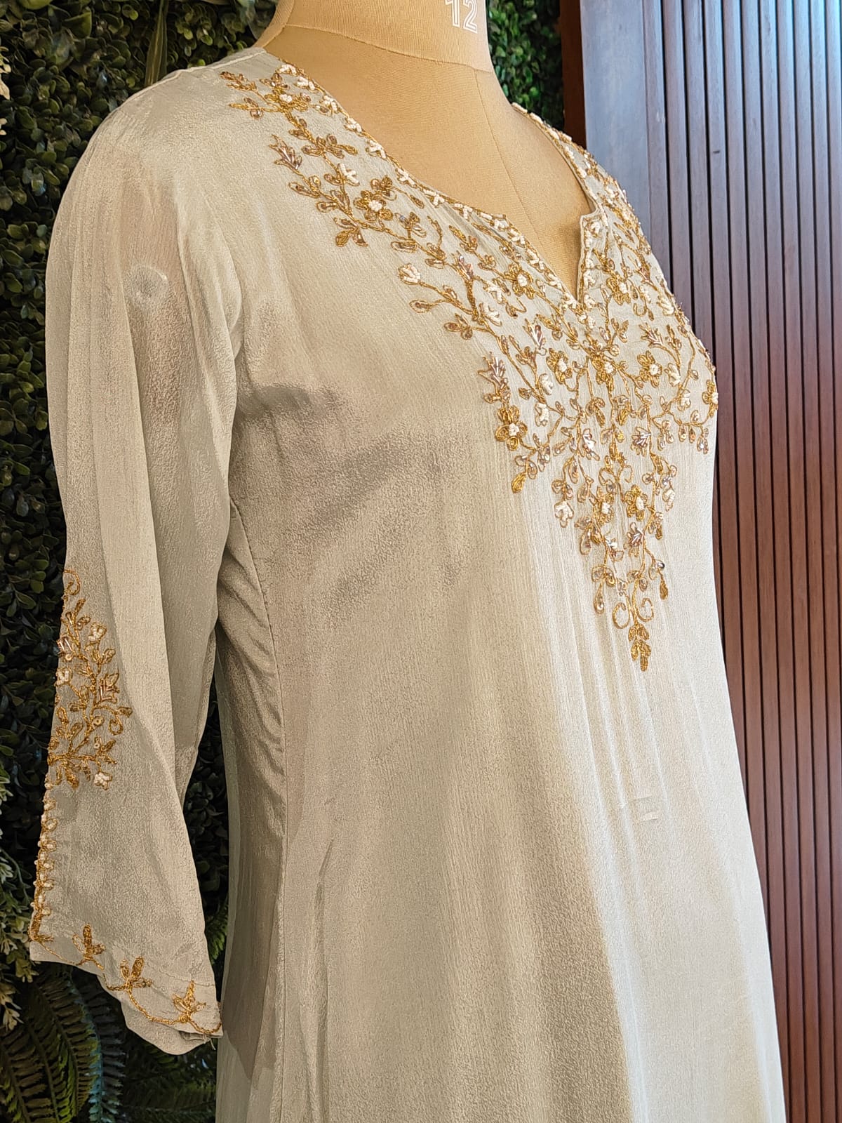 Sky Blue Airline Chinnon Hand Embroidery Kurtha 513