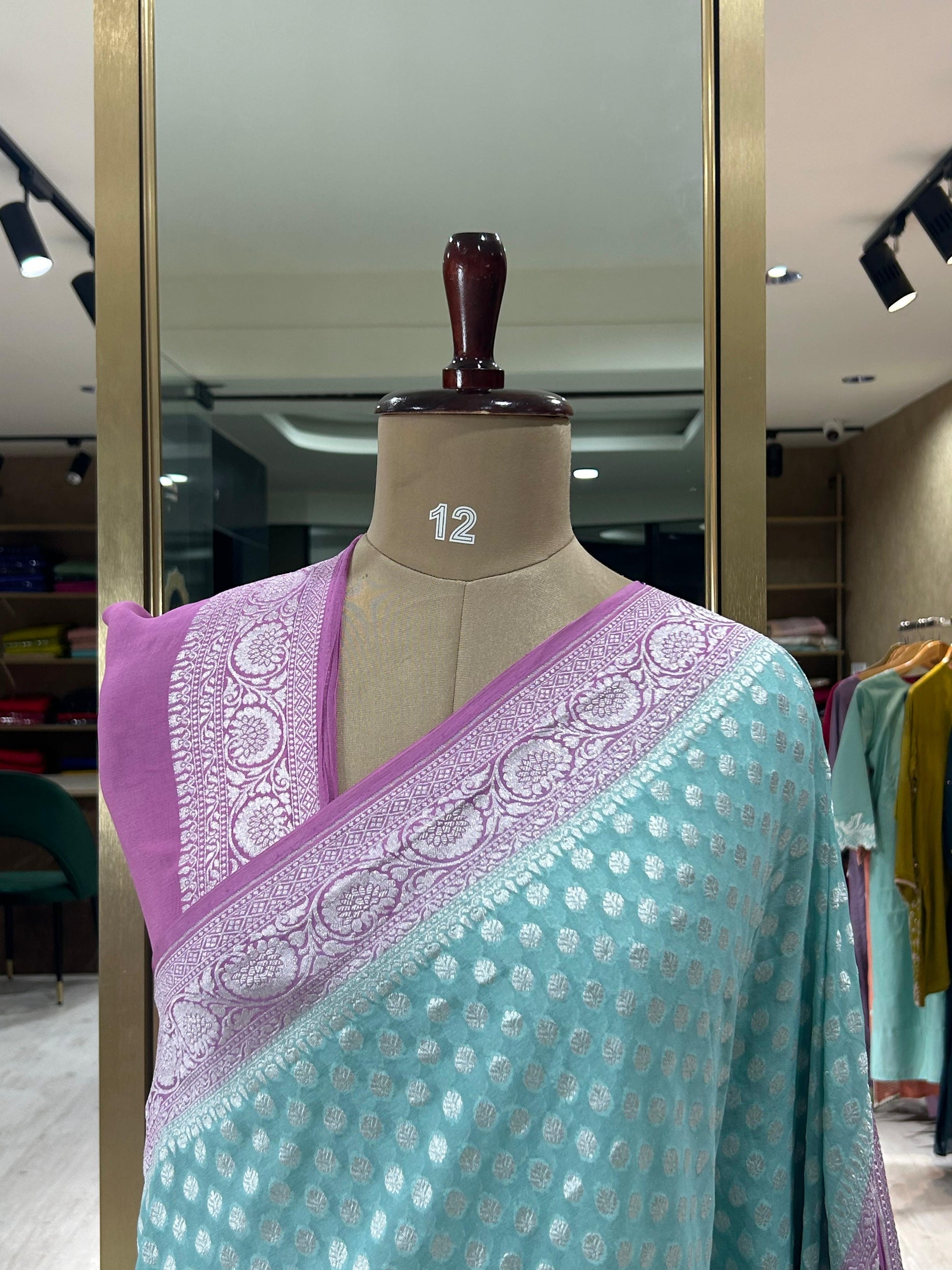 Sky blue n pastel pink banarasi Pure Georgette Saree-12