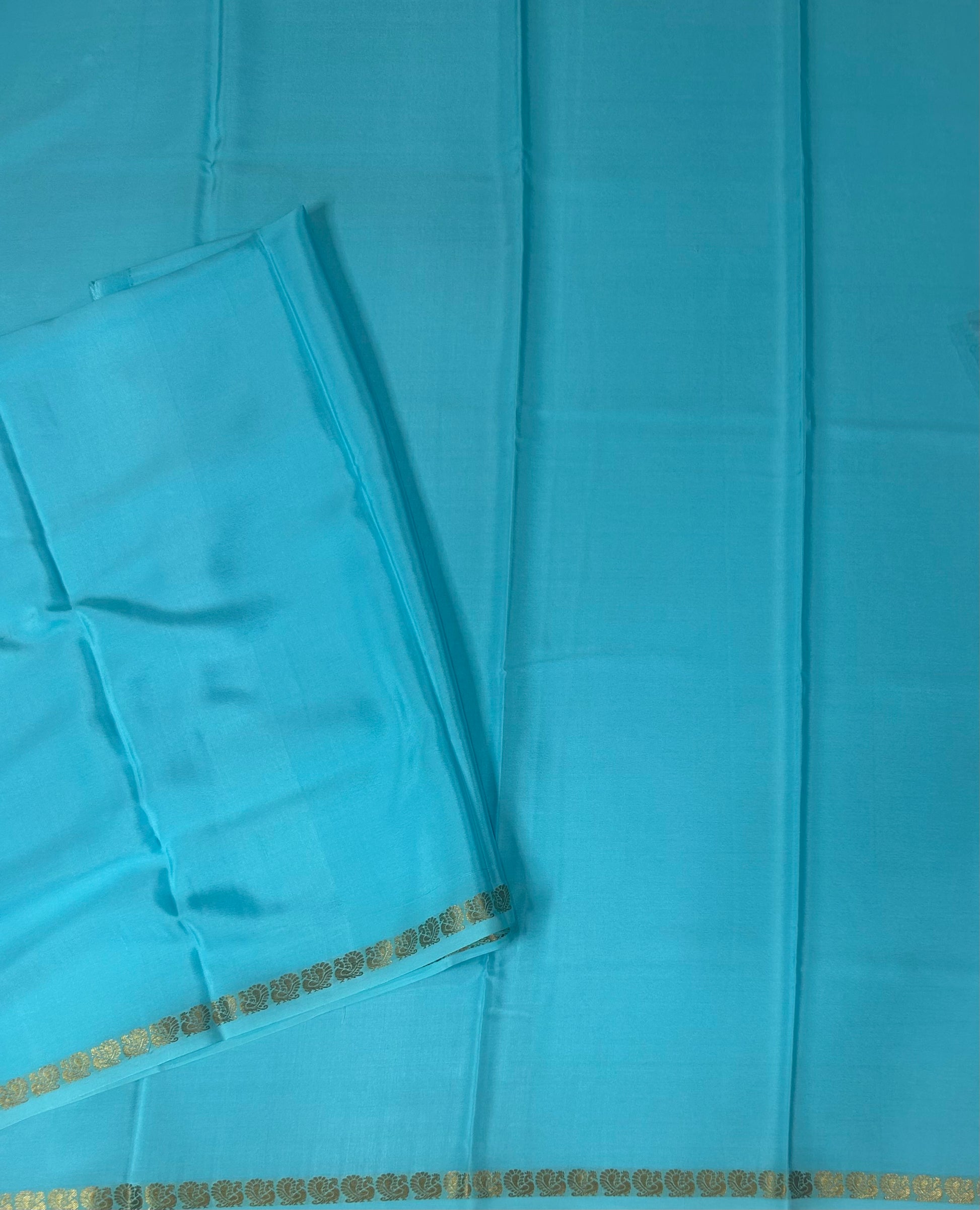 Sky blue plain one inch pure mysore silk-12 saree