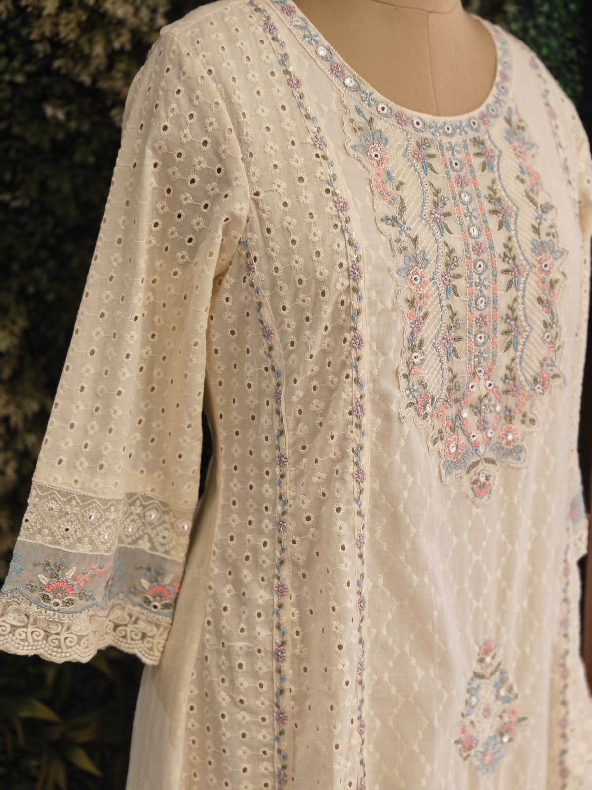White Cotton Hacoba Work Anarkali Kurtha 459